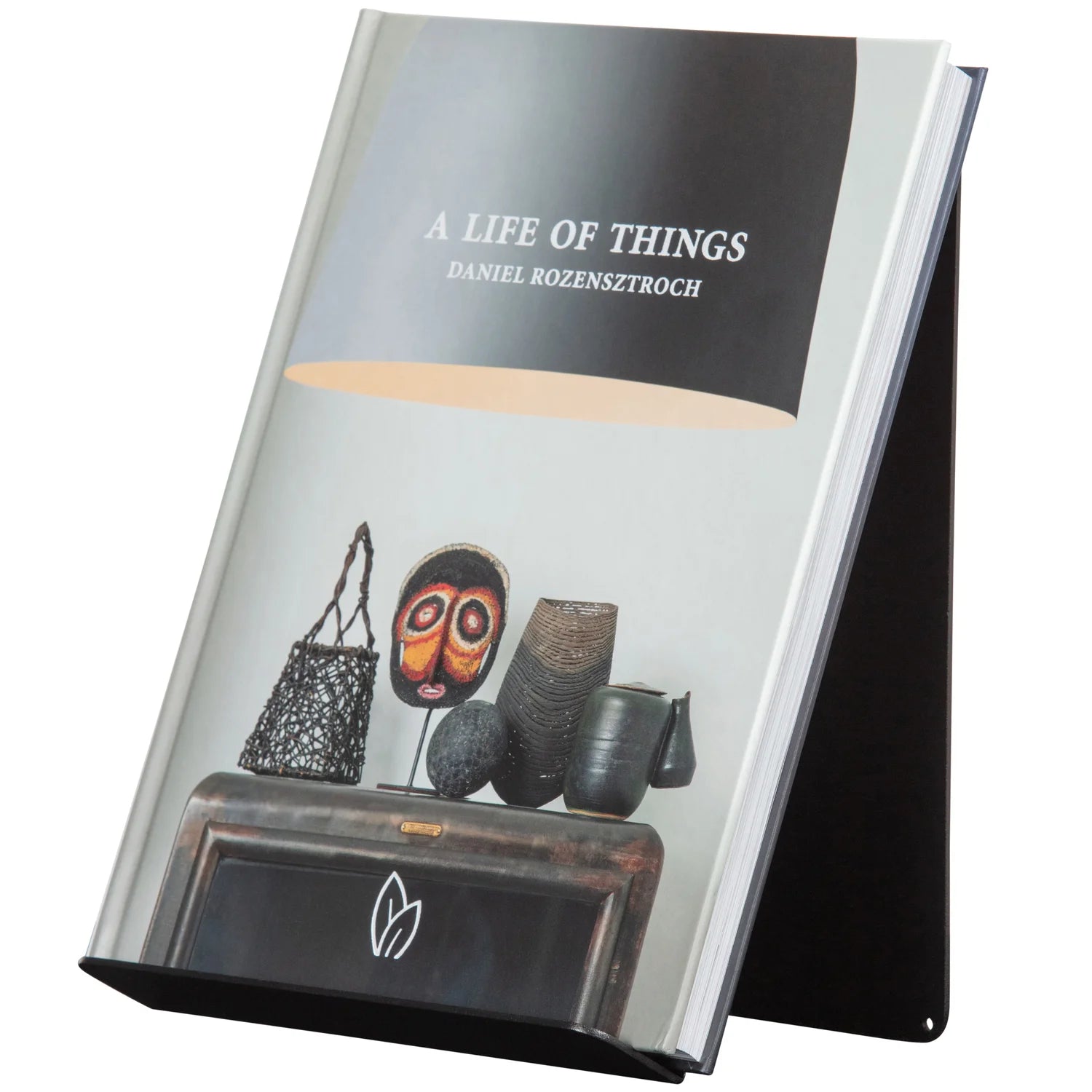 Deze robuuste boekenstandaard van het Nederlandse merk WOOOD heeft een stabiele stand door zijn frame met 2 mm dikte. Het frame is van zwart metaal met een poedercoating. De afgeronde hoeken en randen voorkomen beschadigingen aan de ondergrond. De boekenstandaard is waterproof en beschermd tegen roesten, wat het product geschikt maakt voor gebruik in alle woonruimtes. Het maximale draaggewicht is 6 kg. De boekenstandaard heeft een hoogte van 24 cm en is 19 cm breed. De totale diepte is 14 cm en het totale gewicht van het product is 2 kg.
