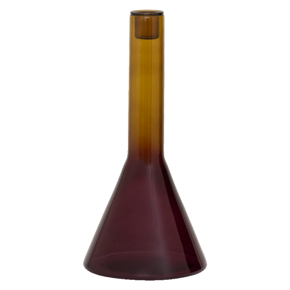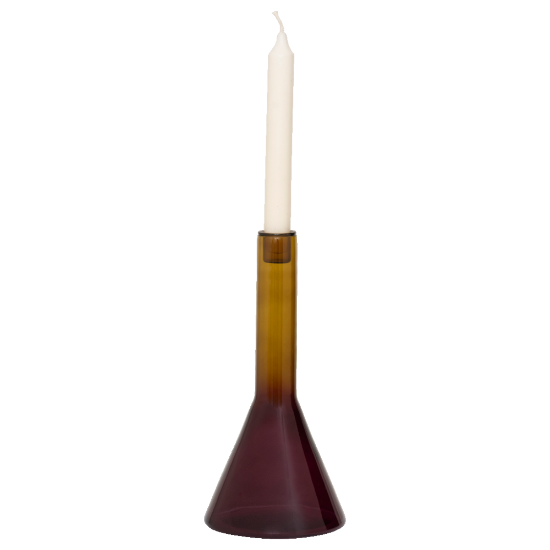 This recycled glass candle holder pairs deep plum and olive hues in an eye-catching duo tone. It brings moody charm and soft light—ideal for quiet nights or festive dinners.