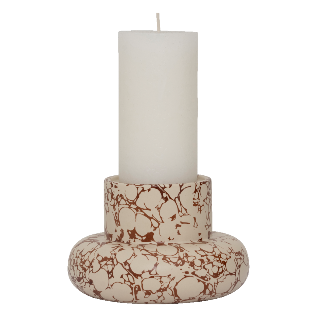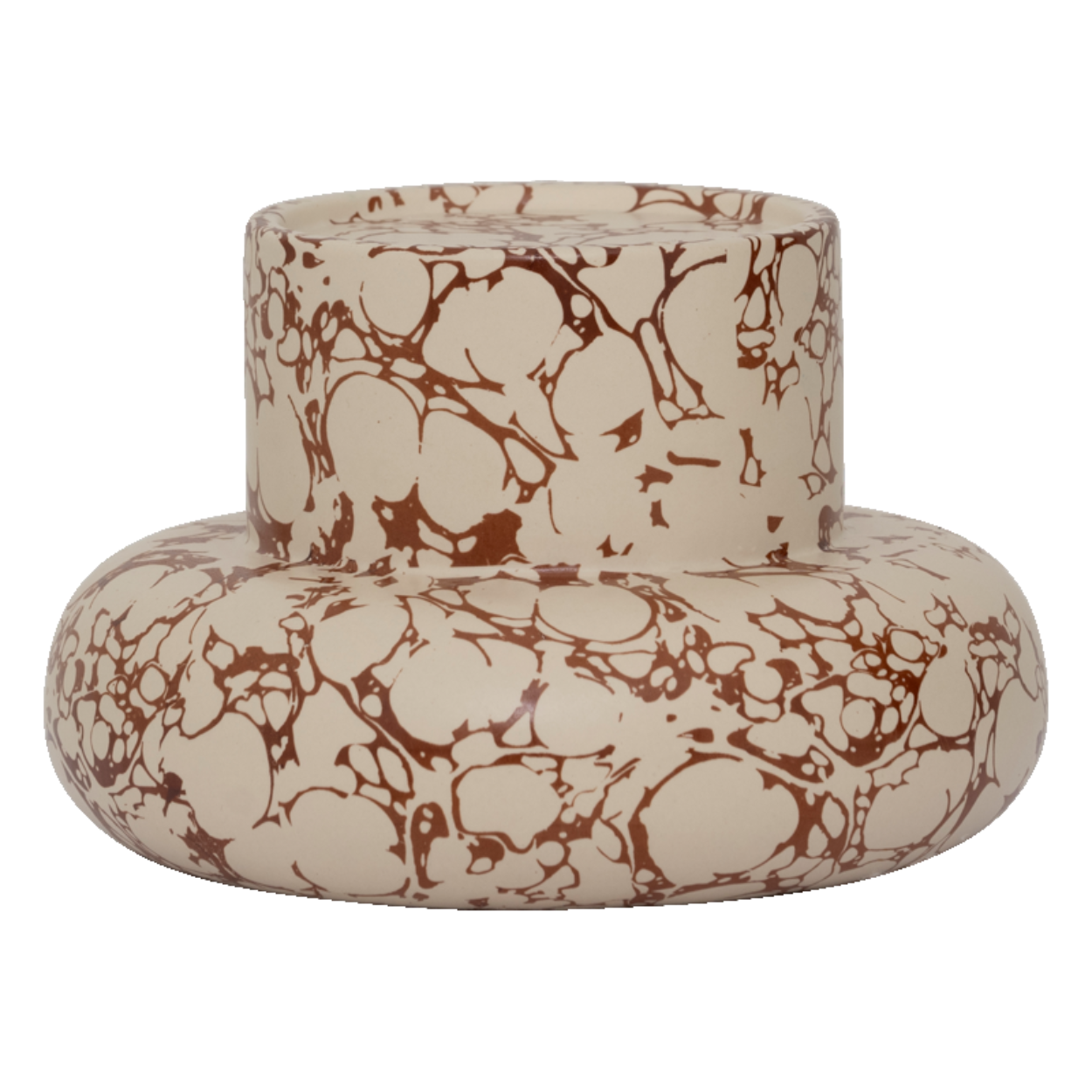 Mukava's bulbous shape is elevated by a marble-like print – a perfect blend of organic form and decorative detail. Handmade from recycled ceramic, it adds an expressive accent to your interior.