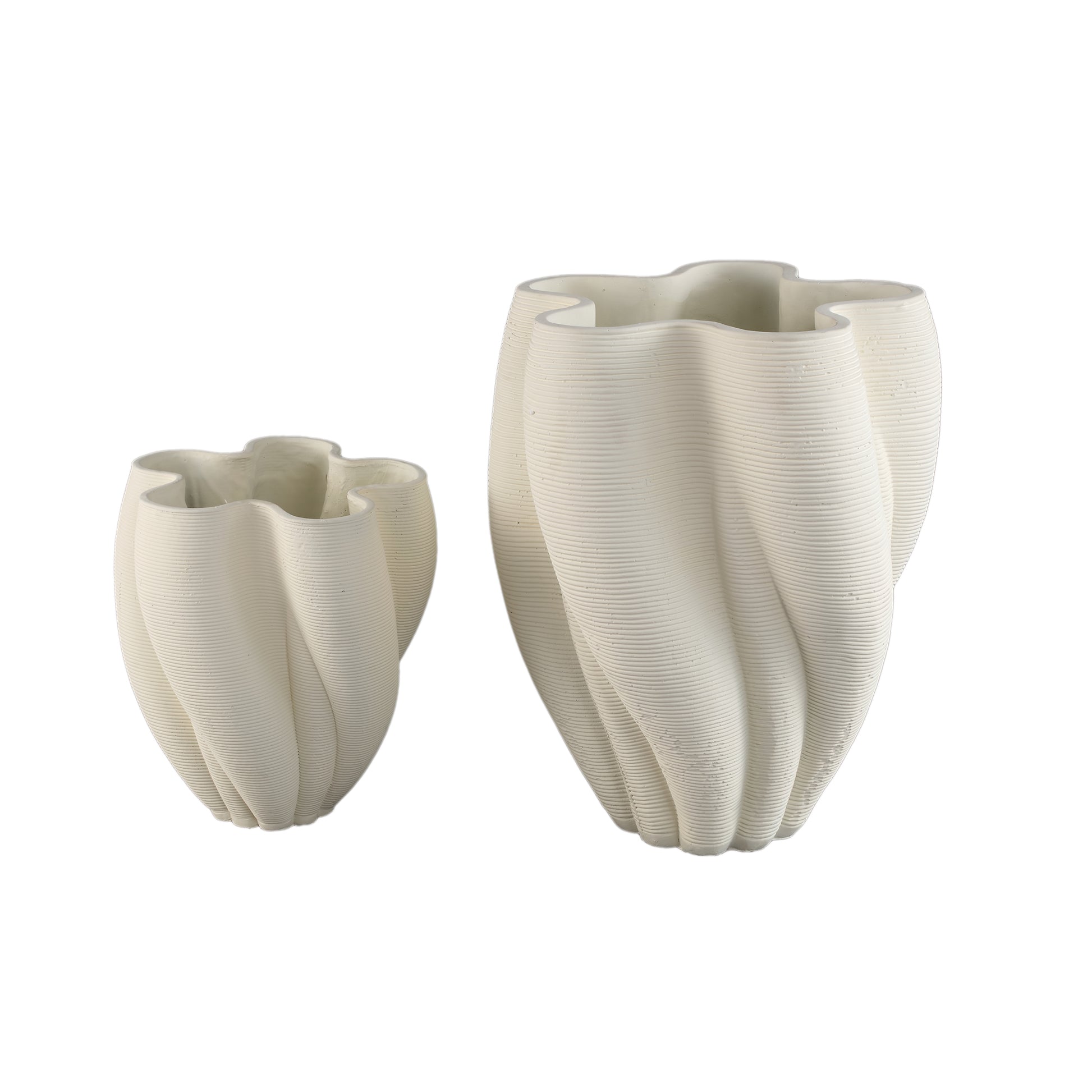 Hastin White Cement Wavy Ribbed Vase 3D Look L