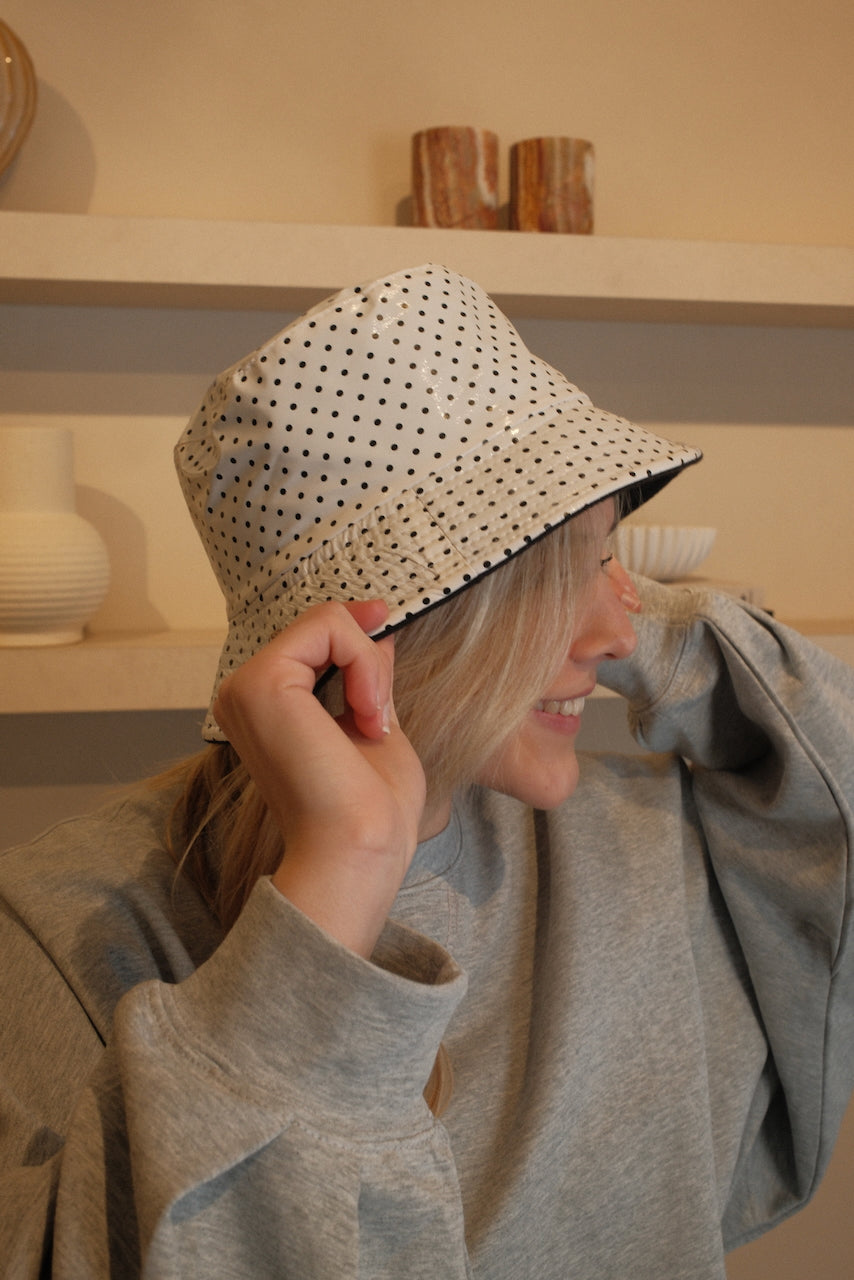 Spring collection ’26 FORMA by LDE dit regenhoedje met polkadot print laat je fashionable de regen in gaan. Het speelse design geeft je outfit een leuke twist, zelfs op grijze dagen. Ideaal voor regen en sneeuw om je haar perfect in shape te houden. Praktisch én stijlvol tegelijk. Een fun accessoire dat functionaliteit en fashion combineert.
