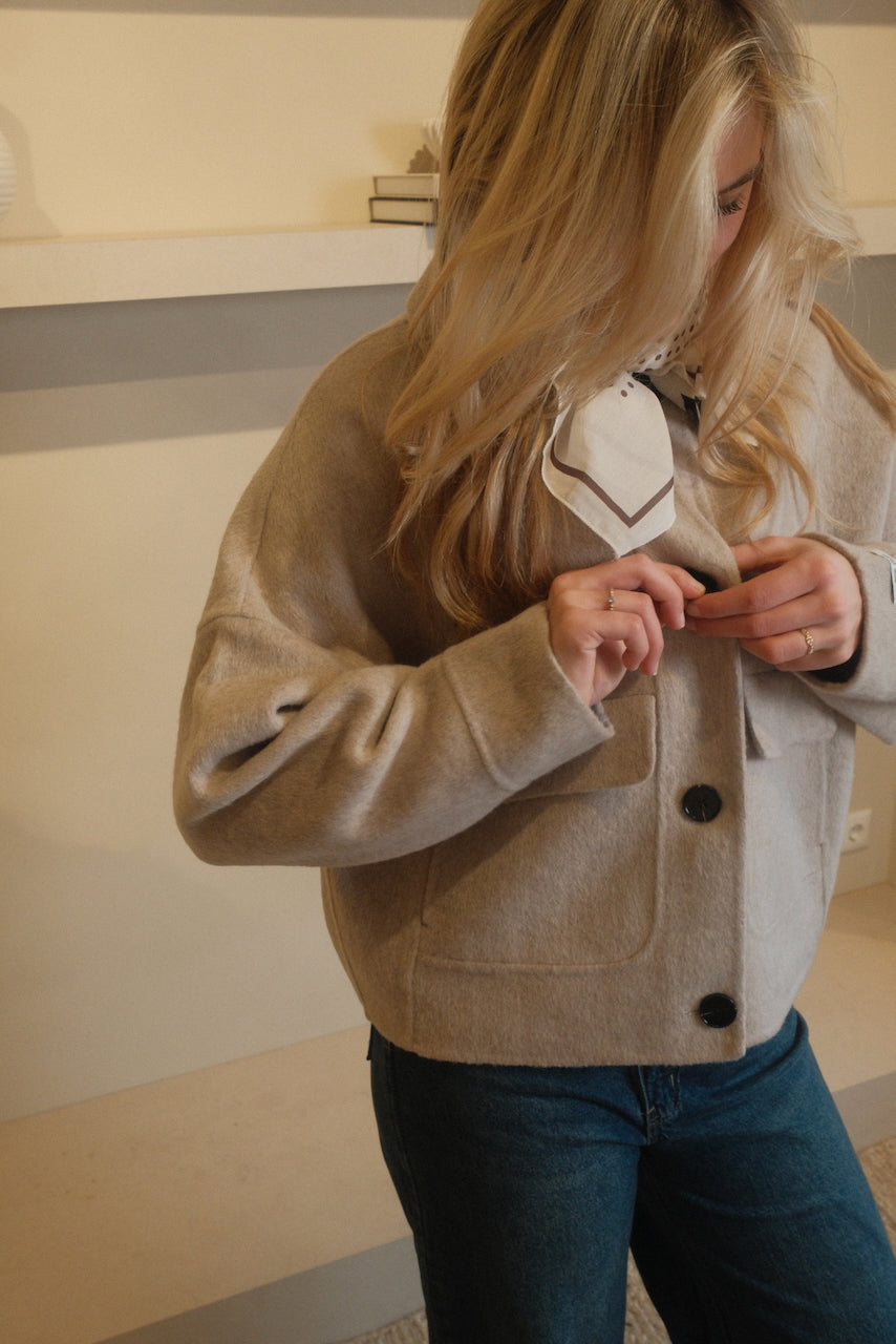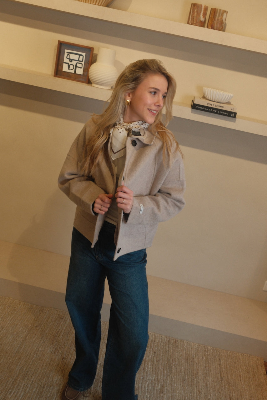 spring collection ’26 FORMA by LDE jas Mara is een prachtige tussenjas met een iets wijdere mouw en een kort model. Hierdoor past de jas moeiteloos bij elke outfit en voelt hij direct bijzonder aan. Het ontwerp is perfect voor zowel het voorjaar als het najaar en kan binnen zelfs als blazer gedragen worden. De afwerking is uniek en van hoge kwaliteit, wat de jas een luxe uitstraling geeft. Dit is zo’n item dat iedereen in de kast wil hebben.