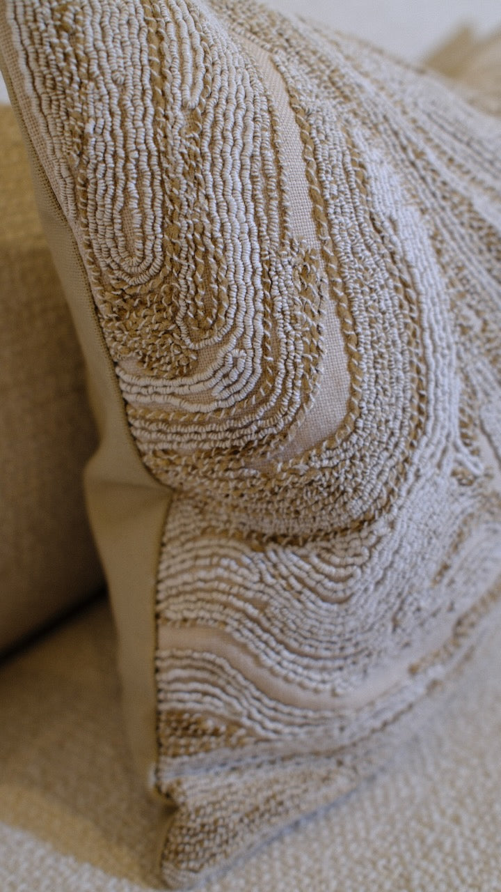 Geef je interieur een warme en stijlvolle uitstraling met het Ondetty sierkussen van Claudi. Dit elegante kussen in een zachte zandkleur brengt rust en verfijning in elke ruimte.