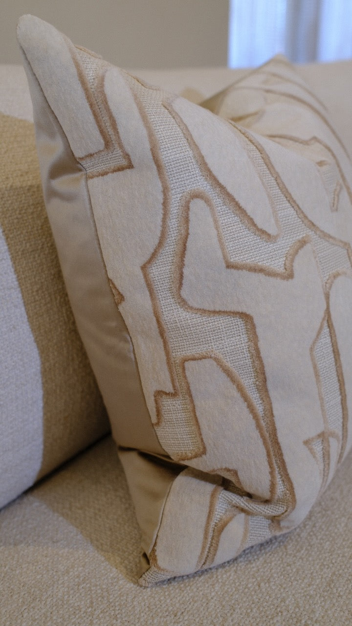 De zachte naturel tint zorgt voor een harmonieuze en lichte uitstraling, terwijl de subtiele structuur in de stof het kussen net dat beetje extra karakter geeft. Perfect om te combineren met andere kussens voor een speels geheel of juist als rustige eyecatcher op je bank, fauteuil of bed.