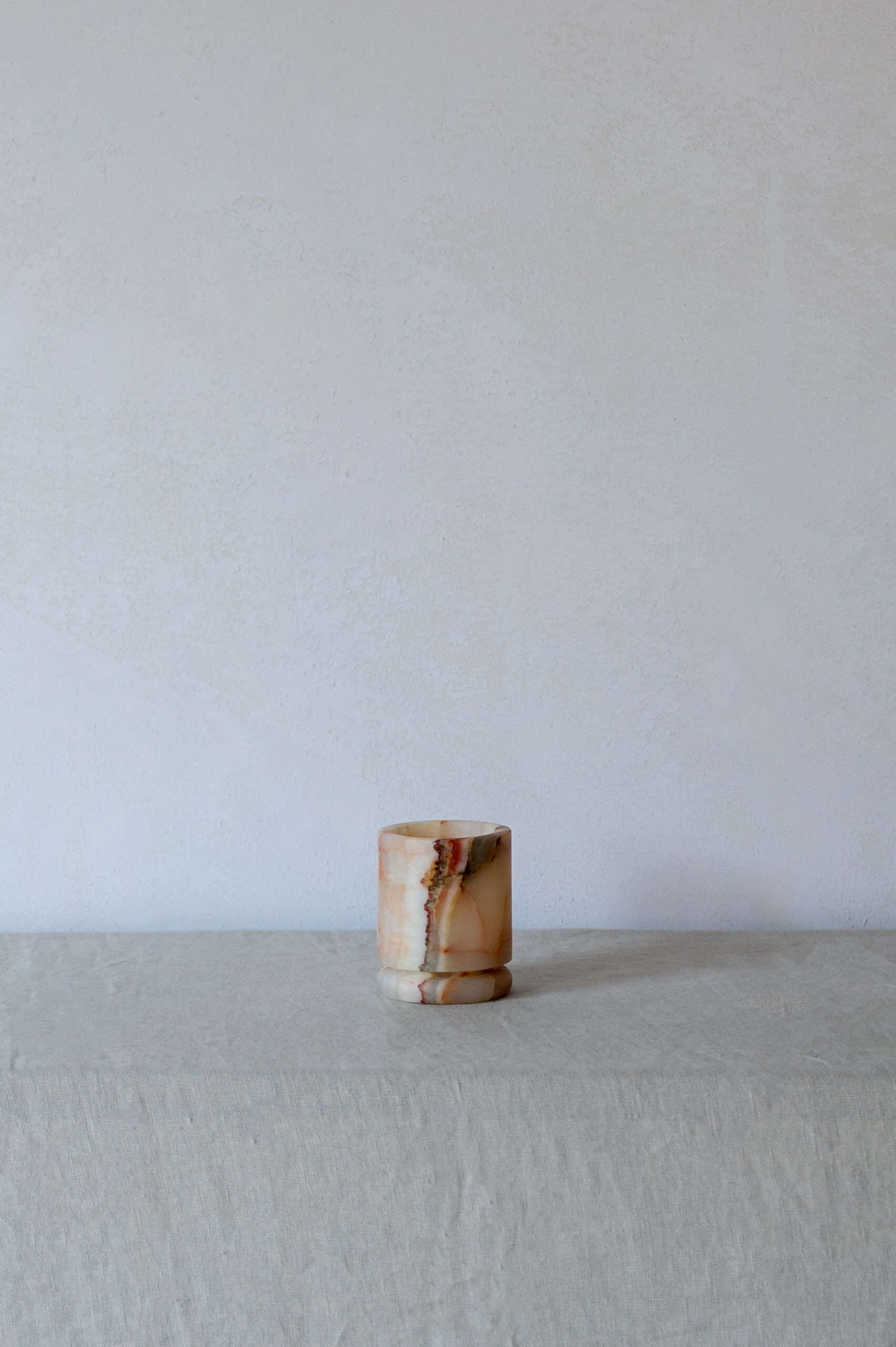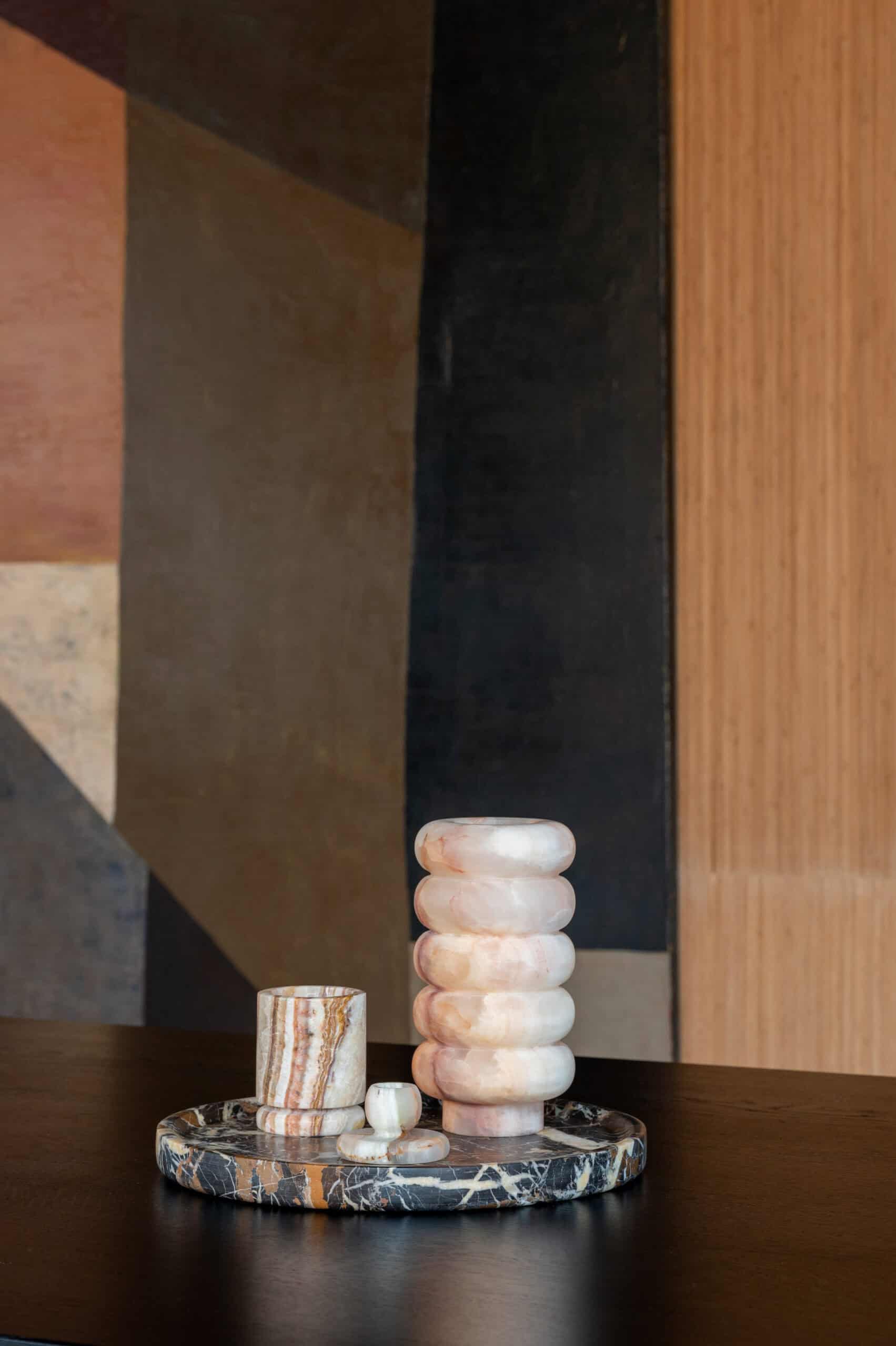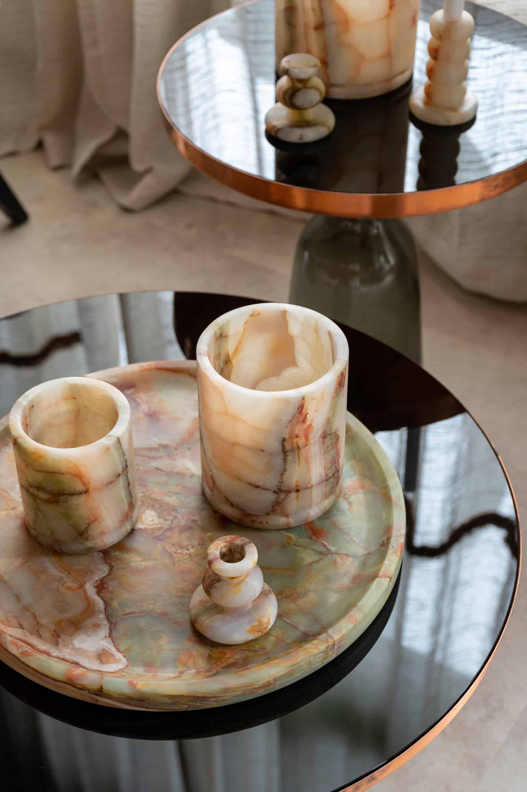 The collection is an exquisitely balanced combination of pure design, timeless aesthetics, refined materials, and impeccable craftsmanship with unwavering attention to detail. This results in objects that transcend trends and illuminate spaces with a captivating aura. Designed by Dayinne Potuyt - Please note: Onyx is a natural material, so each tealight may vary slightly from the photos.