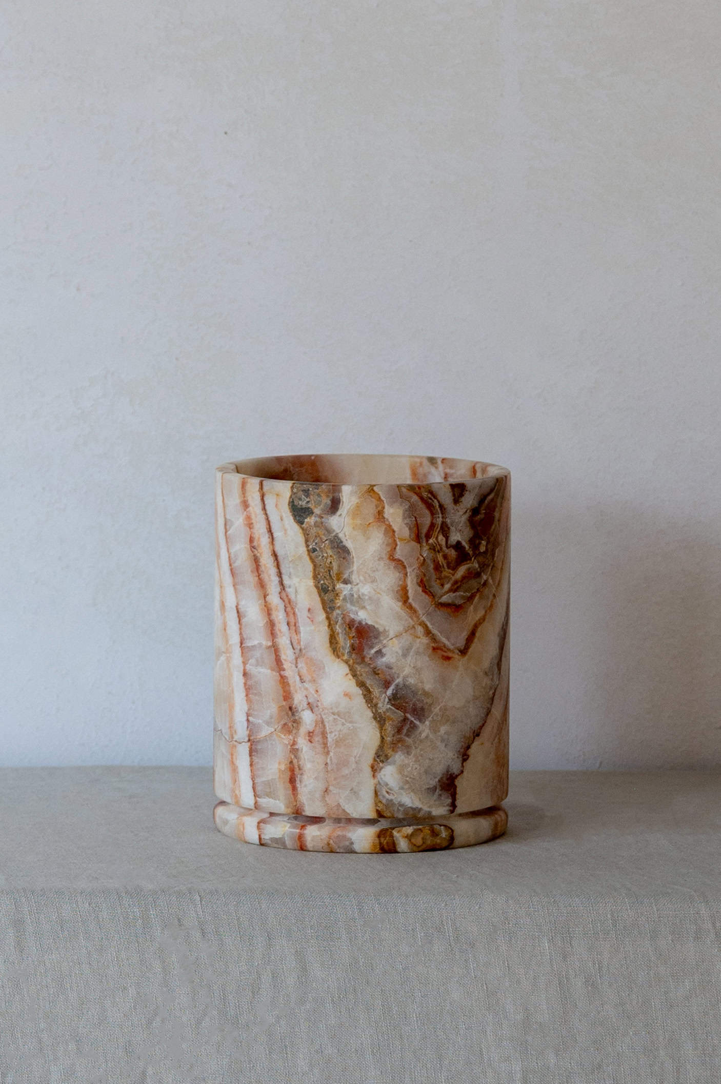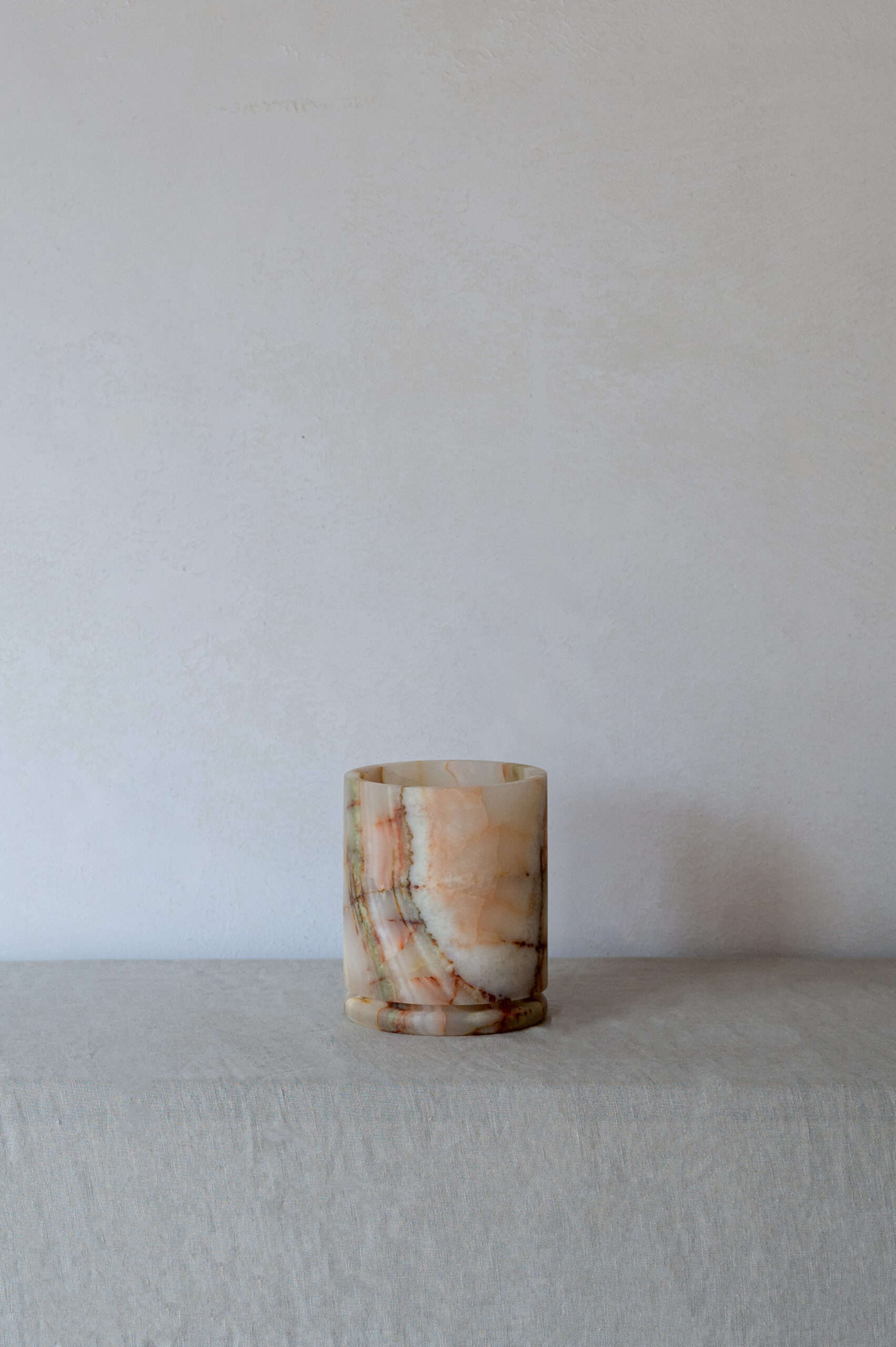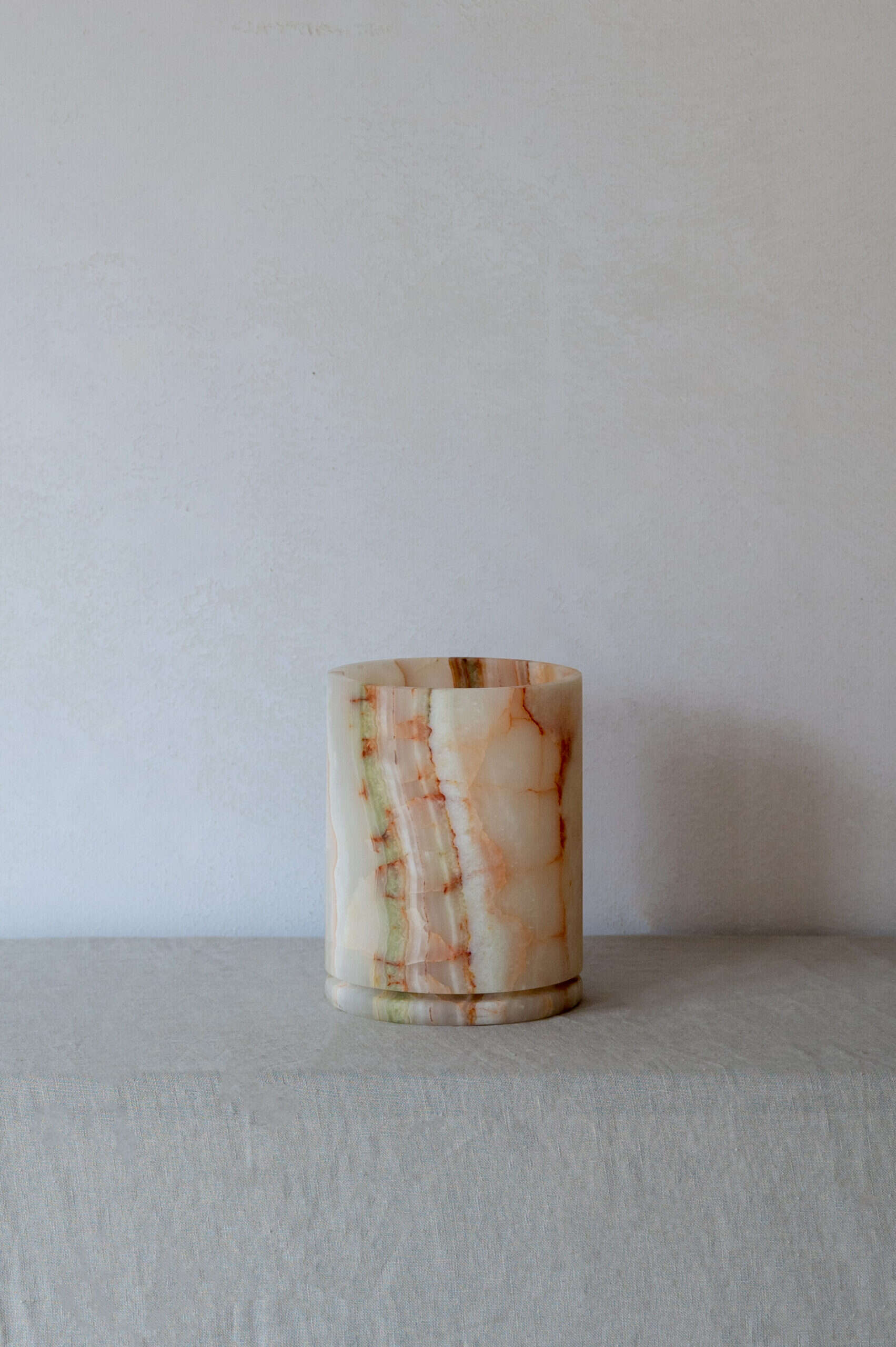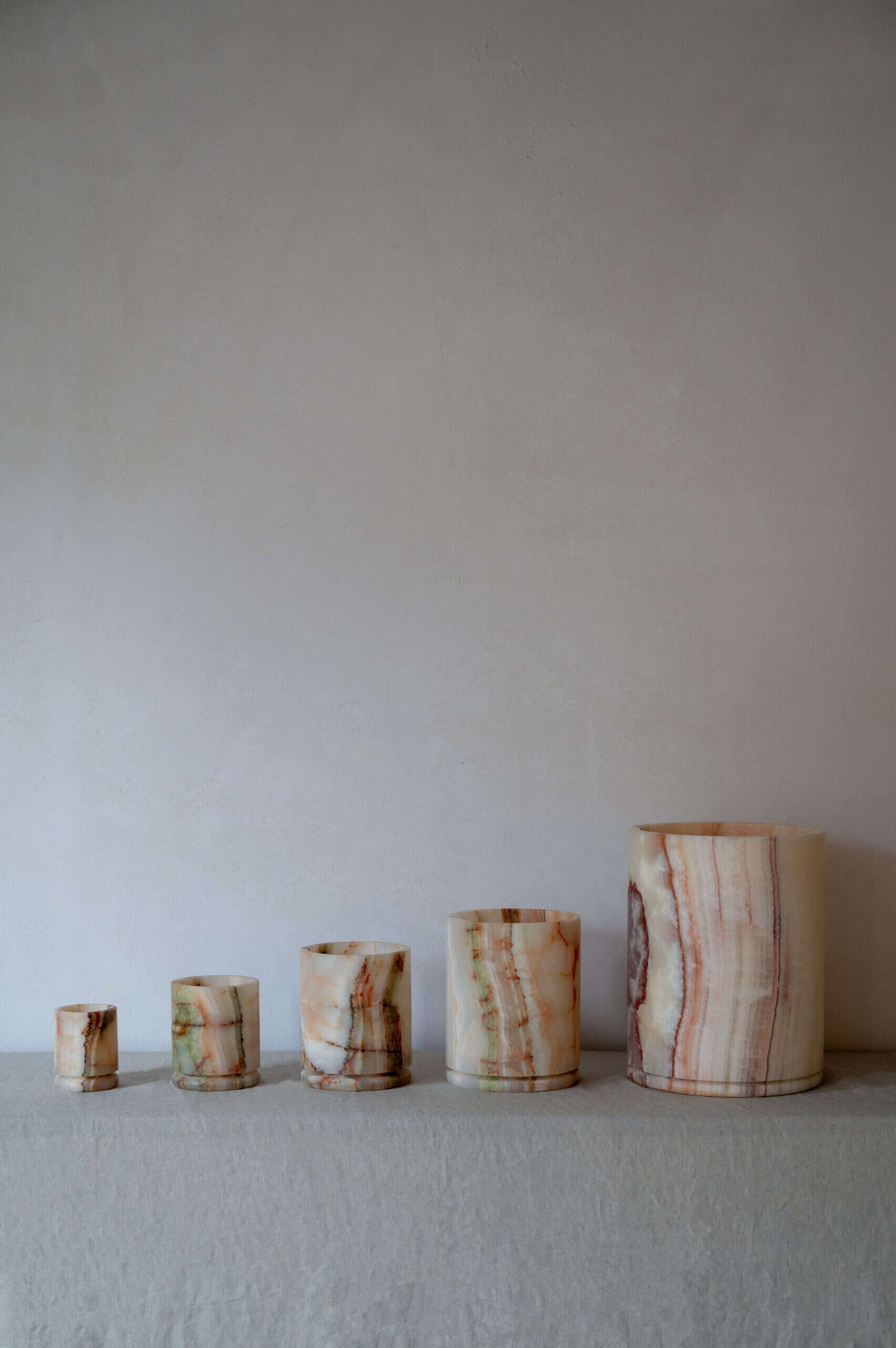 The collection is an exquisitely balanced combination of pure design, timeless aesthetics, refined materials, and impeccable craftsmanship with unwavering attention to detail. This results in objects that transcend trends and illuminate spaces with a captivating aura. Designed by Dayinne Potuyt - Please note: Onyx is a natural material, so each tealight may vary slightly from the photos.