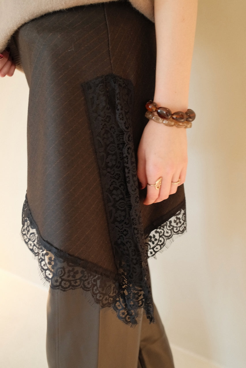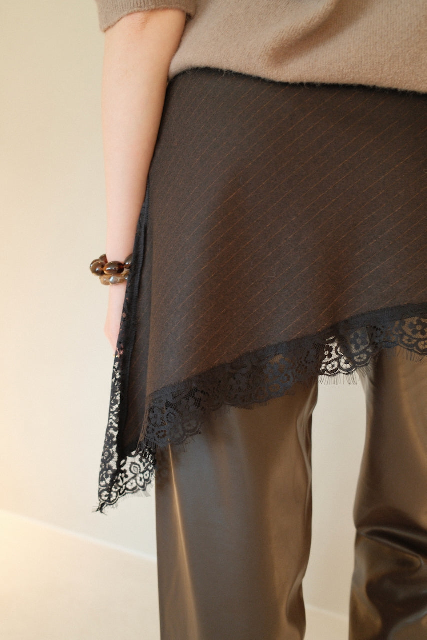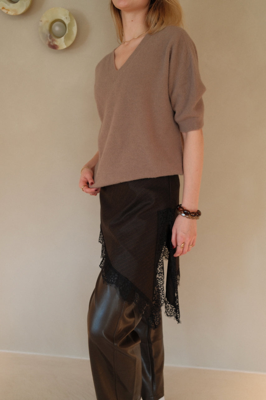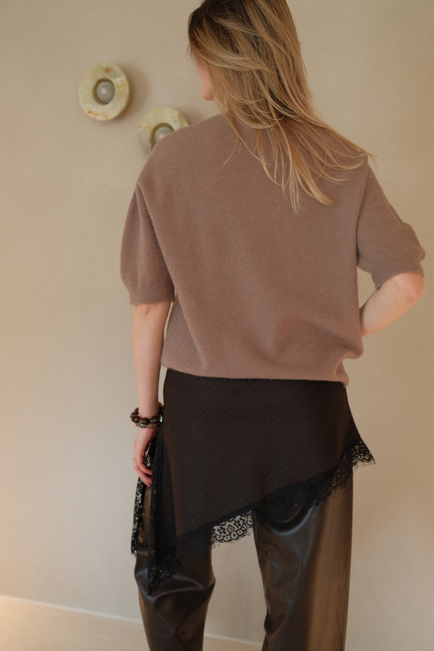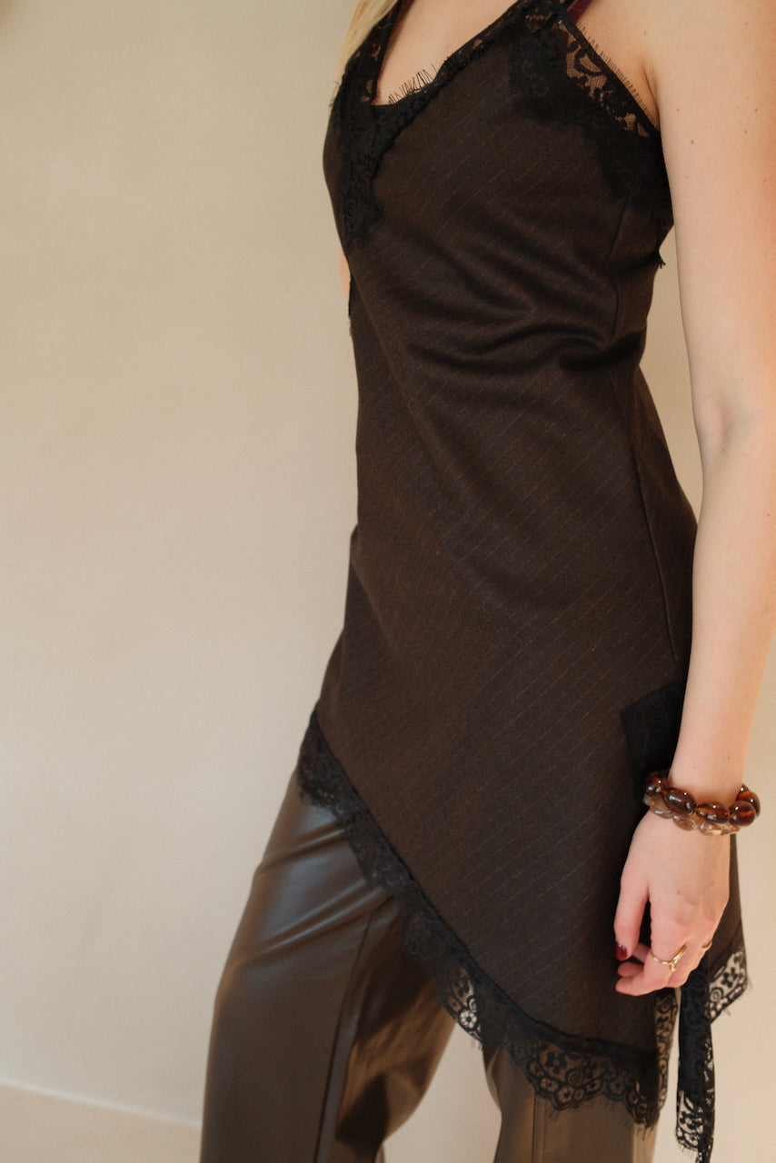 De Elly top is een echte must have en perfect voor het creëren van gelaagde looks. Draag hem onder een trui en laat hem subtiel eronder uitkomen voor een verfijnd detail. Ook prachtig te combineren met onze oversized blazer, waarbij de punt er stijlvol onder vandaan komt. De top is afgewerkt met uniek kant en mooie wollen stofdetails, wat zorgt voor een luxe en bijzondere uitstraling.