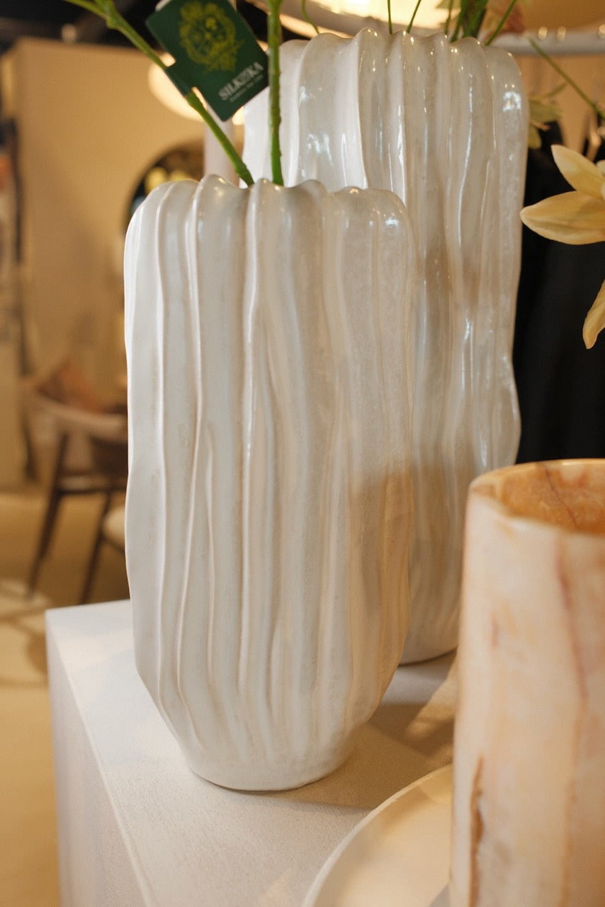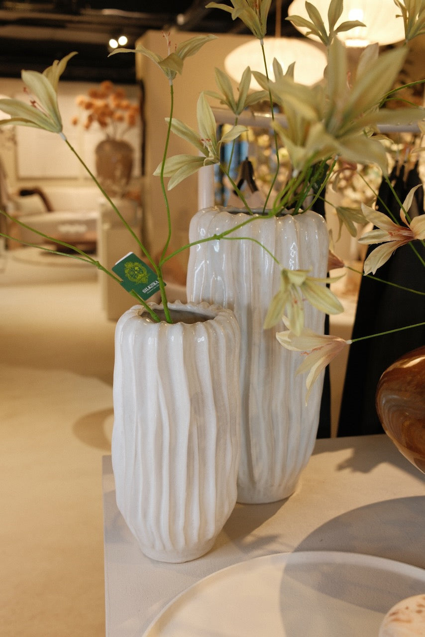De Luna vaas in crème is een elegante en opvallende vaas met een rustige, natuurlijke uitstraling. Het keramische materiaal en de zachte crèmekleur geven de vaas een tijdloos karakter, waardoor hij moeiteloos past in zowel moderne als warme, sfeervolle interieurs.