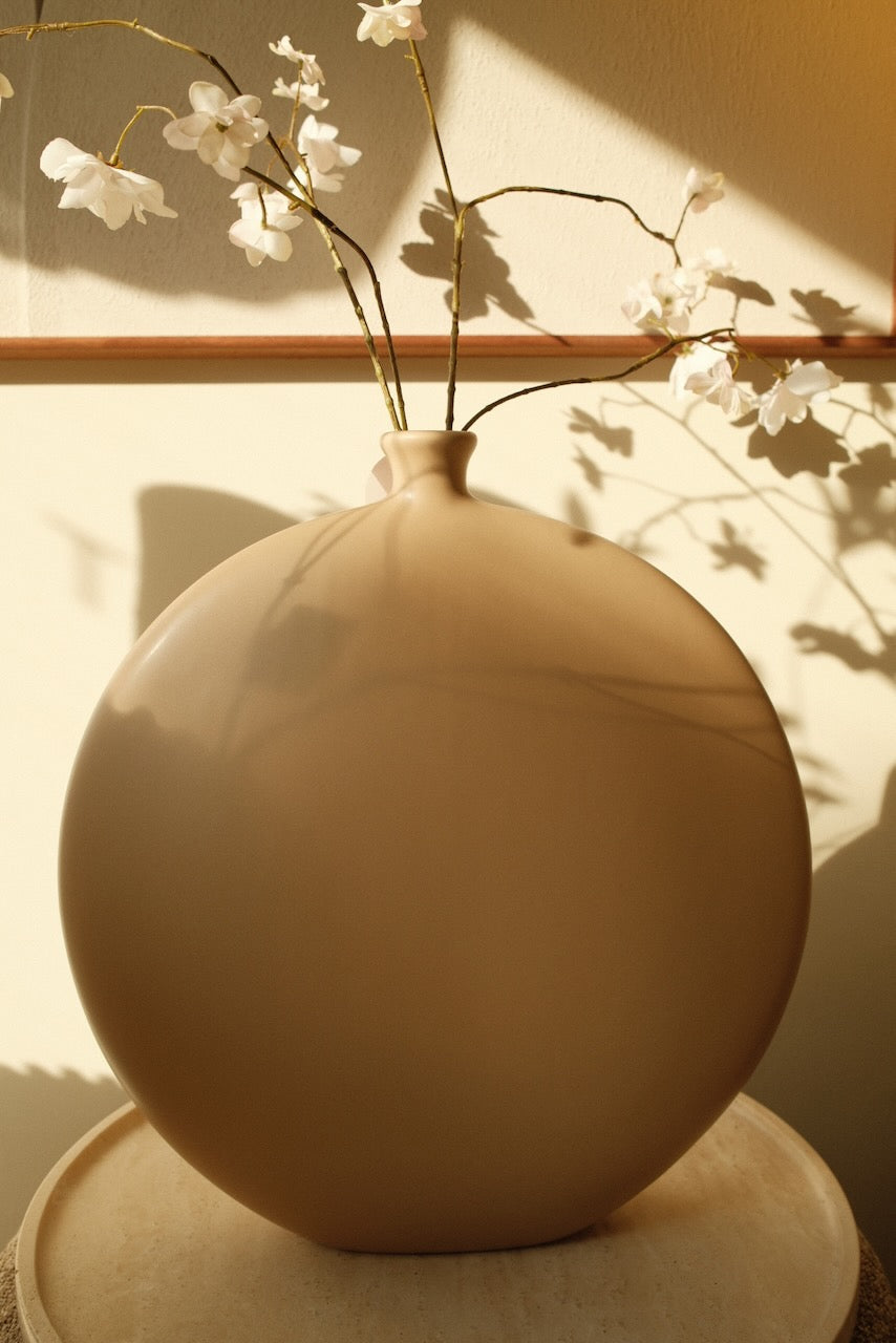 De natuurlijke kleur en tijdloze vormgeving maken deze vaas een stijlvolle toevoeging die sfeer en karakter brengt in iedere ruimte.