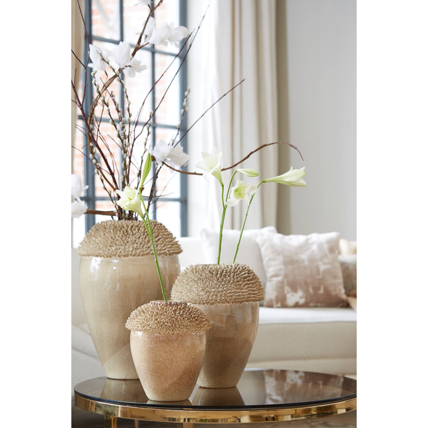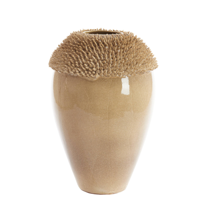 De SANGKU vaas van Light & Living is een echte eyecatcher met een speels en sculpturaal design. De structuur doet denken aan een trendy, stijlvolle egel, waardoor deze vaas een verrassend accent geeft aan ieder interieur. Uitgevoerd in keramiek met een zachte taupe tint straalt hij zowel originaliteit als elegantie uit.