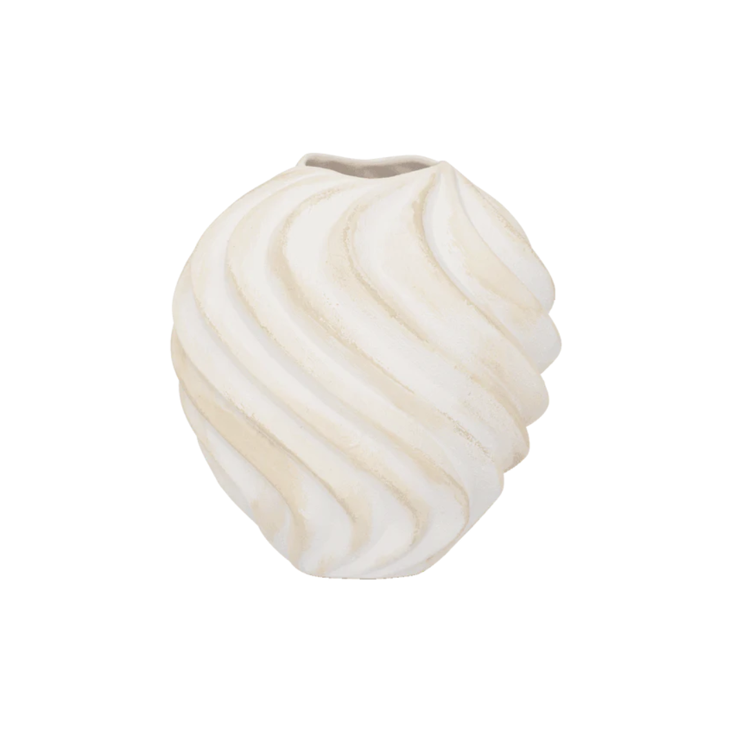 Vaas Ribbed is met recht een kunstwerkje te noemen. Met een expressief 3D artwork als golven in de zee heeft deze vaas een meer dan bijzondere afwerking - een tactiele zandstructuur. De vaas is met de hand gemaakt door Portugese ambachtslieden, die de kunst van het pottenbakken al generaties lang in de vingers hebben zitten. Onderhoudsinstructies: Reinigen met een vochtige doek. Dit is een handgemaakte, keramieken product, dus we adviseren je om de vaas voor gebruik op 100% waterdichtheid te testen.