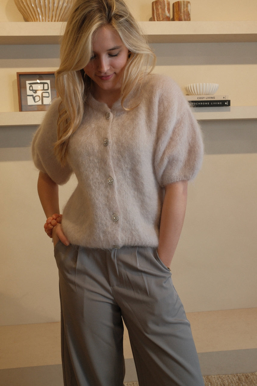 Spring collection ’26 FORMA by LDE vest Jade heeft een hele luxe uitstraling dankzij het unieke kid mohair materiaal. Het vest voelt zacht aan en geeft elke outfit direct een verfijnde look. De bijzondere knopen maken dit item echt uniek en zorgen voor een stijlvol detail. Perfect om zowel casual als chic te dragen. Een vest dat elke outfit moeiteloos naar een hoger niveau tilt. One size