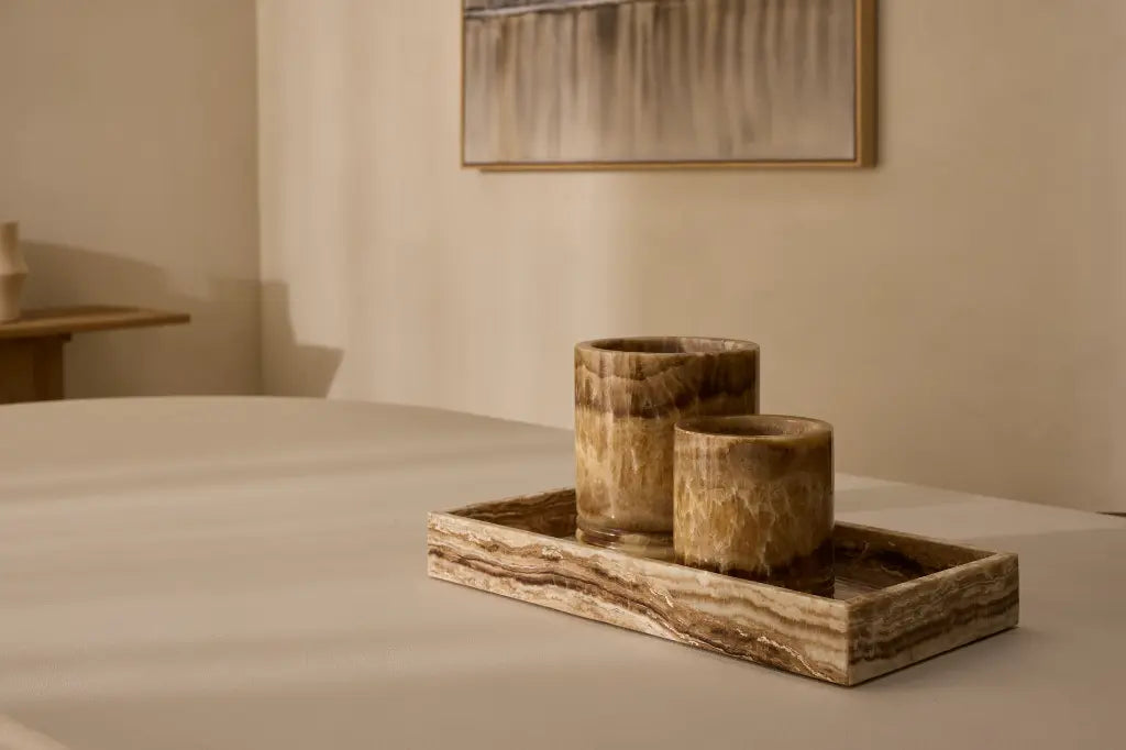 Het windlicht Sandal Onyx L Ø14x17 cm is een stijlvol en sfeervol woonaccessoire met een warme, natuurlijke uitstraling. Het windlicht is vervaardigd uit echt onyx, een bijzondere natuursteen met zachte bruine en beige tinten en unieke aders, waardoor ieder exemplaar een eigen karakter heeft.