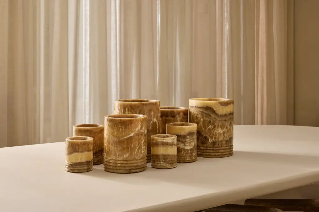 Waxinelichthouder Sandal onyx L Ø14x17 cm