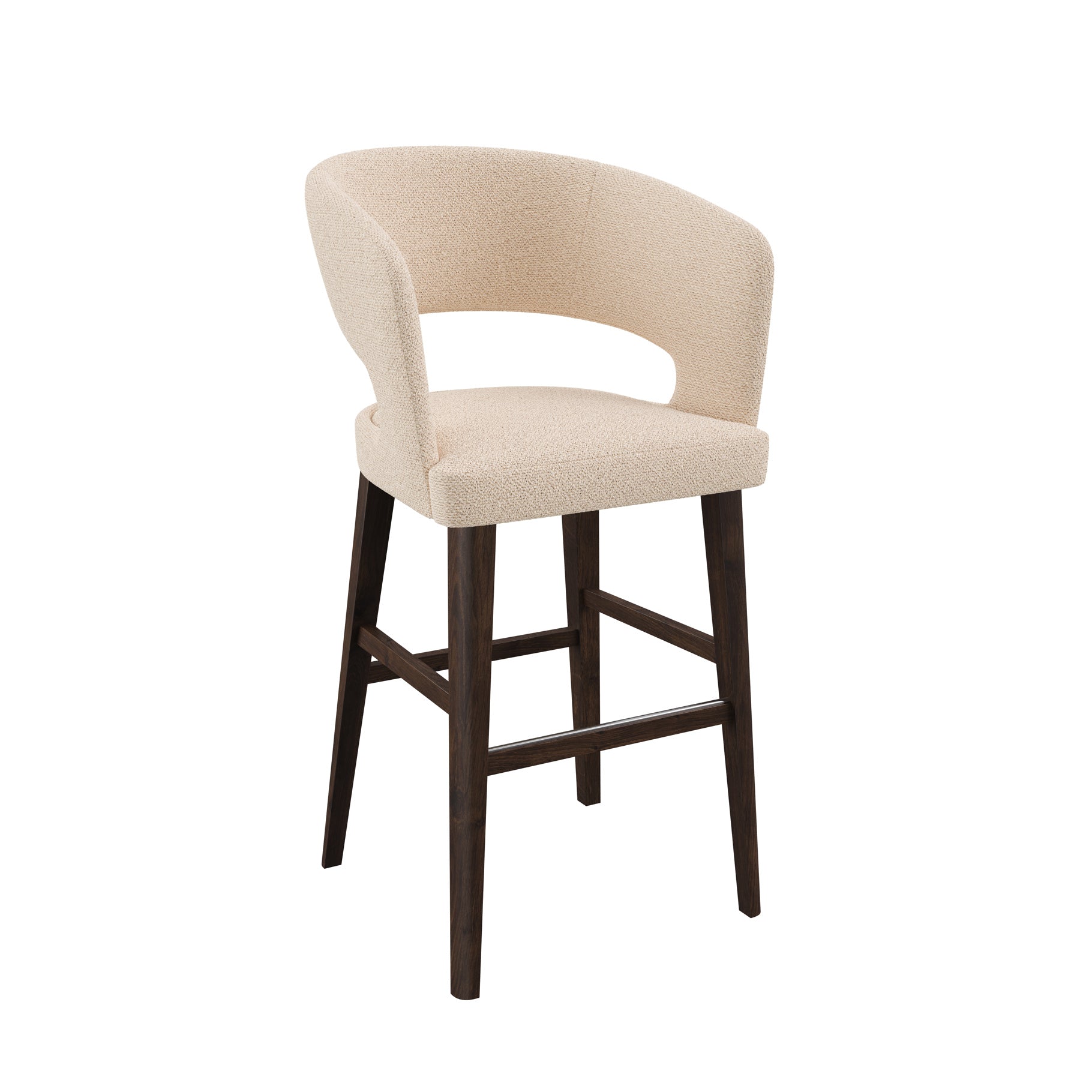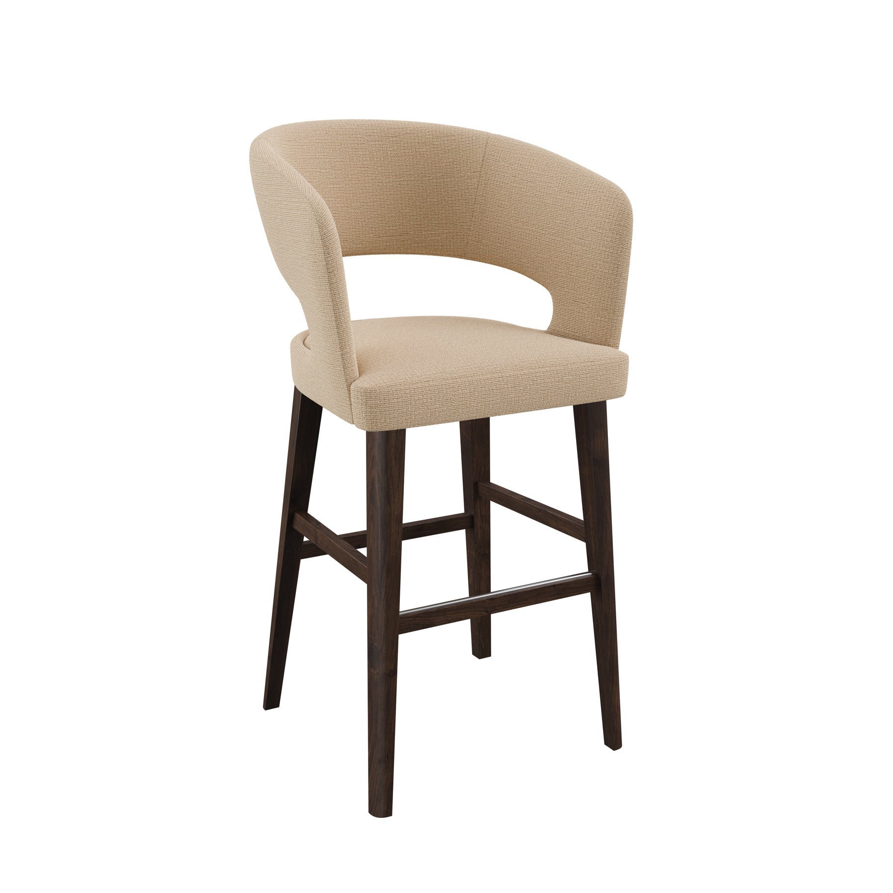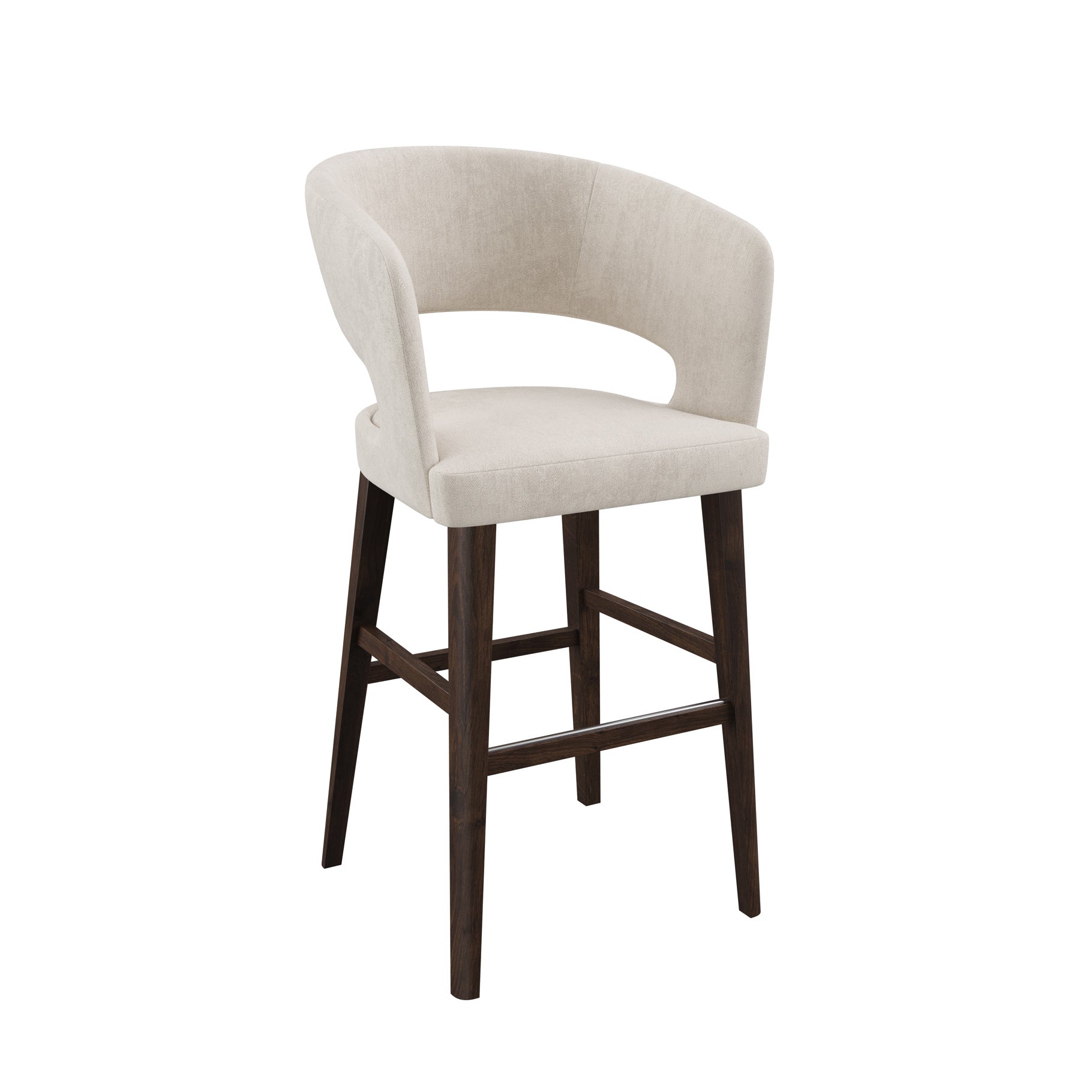 Het stevige beukenhouten frame met een verfijnde donker walnootkleurige afwerking vormt een prachtige basis, terwijl de 100% polyester bekleding en zachte foamvulling zorgen voor optimaal zitcomfort. Perfect voor een chique bar of keukeneiland.