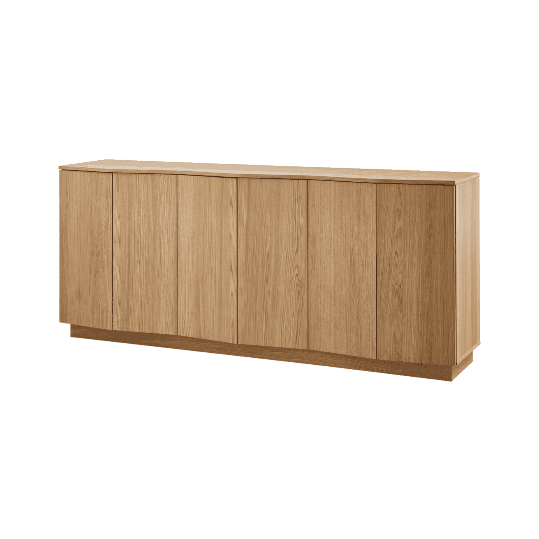 Met zijn strakke lijnen en tijdloze ontwerp voegt het Zuma dressoir een vleugje verfijning toe aan je interieur. Het meubel is voorzien van zes deuren die toegang geven tot ruime opbergvakken, ideaal voor het organiseren van je spullen. De nerven en knoesten in het eikenhout benadrukken de authentieke uitstraling en maken elk stuk uniek.