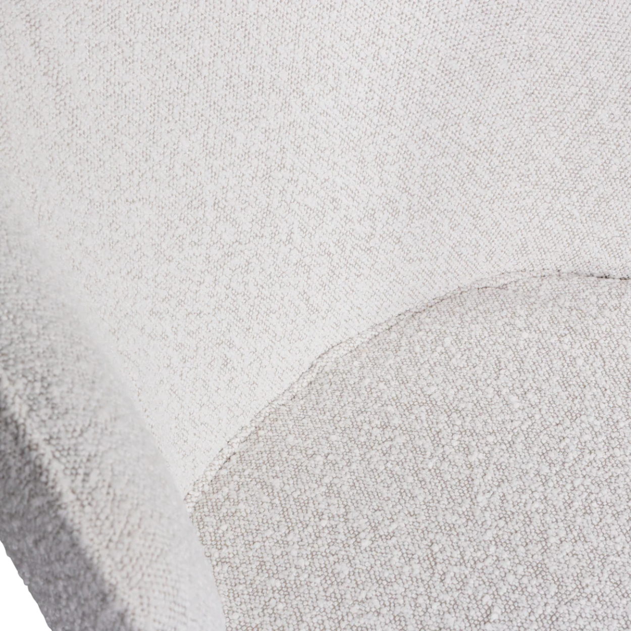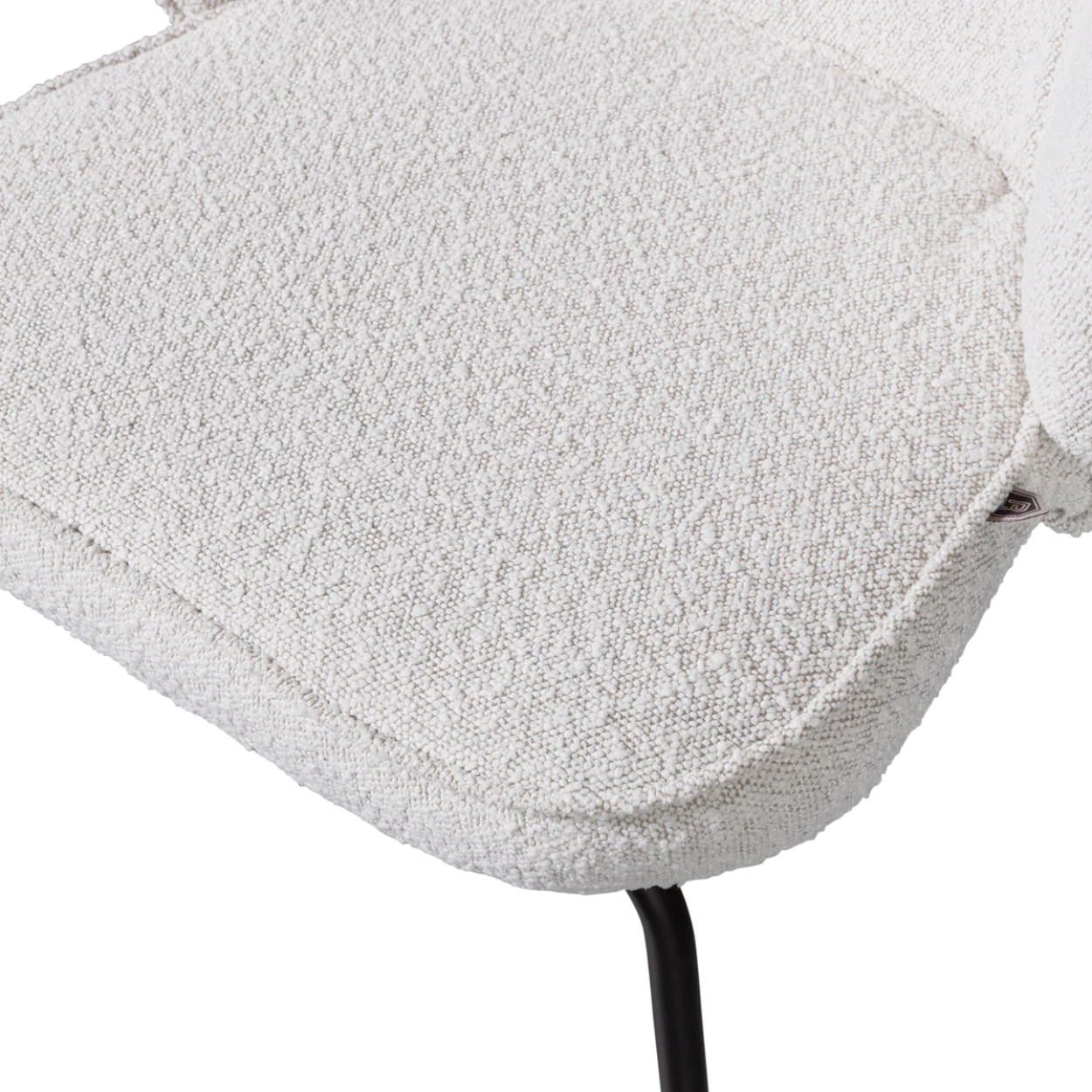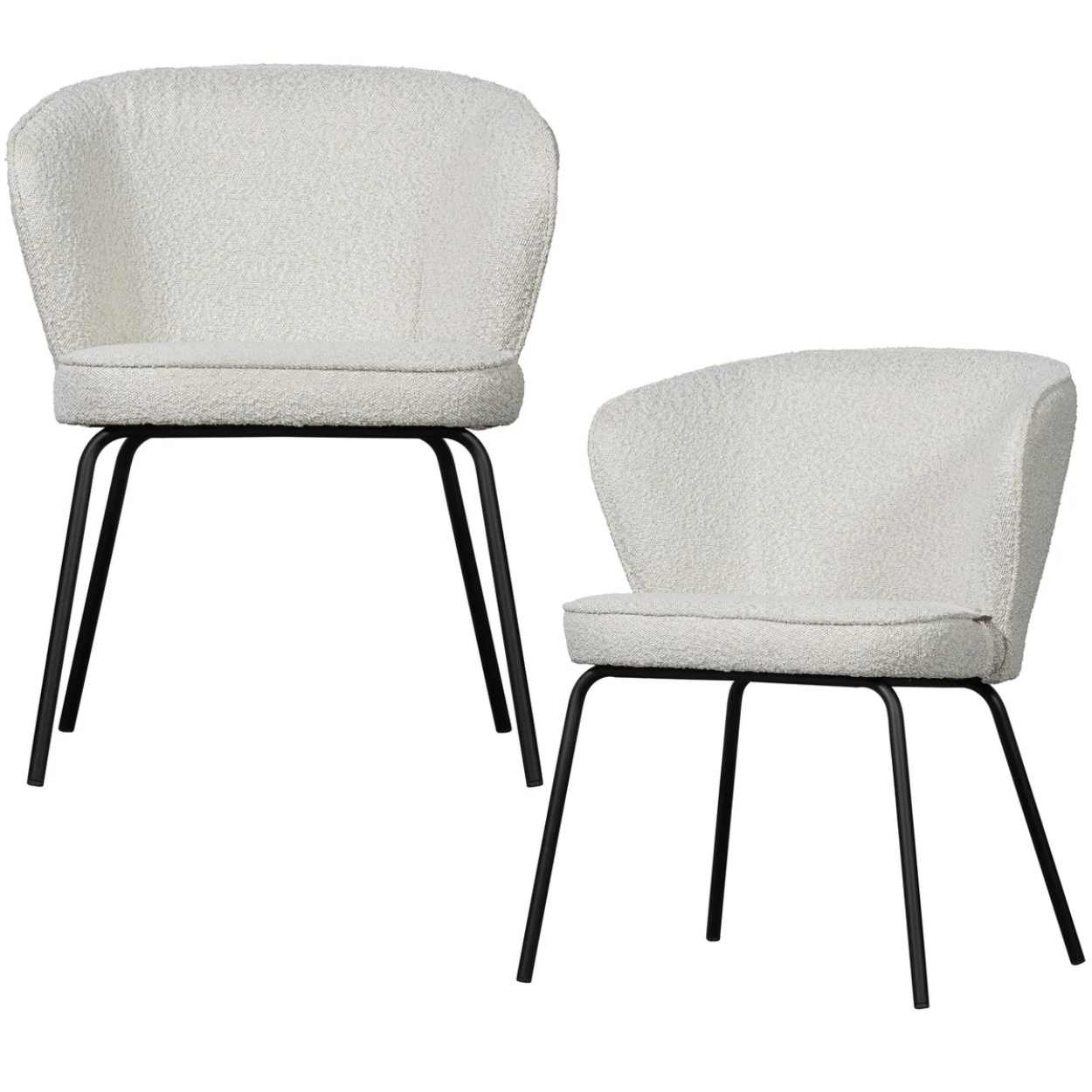 De eetkamerstoel is voorzien van een stevig, matzwart metalen onderstel en een zitgedeelte bekleed met Colmar boucle stof, gemaakt van 100% polyester. Deze stof is zacht, heeft een elegante textuur en brengt direct warmte in de ruimte. Met een Martindale-score van 100.000 is de boucle zeer geschikt voor intensief gebruik. De dichte weeftechniek maakt de stof sterk en slijtvast, terwijl de hoge kleurvastheid ervoor zorgt dat de stoel langdurig mooi blijft. Direct zonlicht wordt afgeraden om kleurverschillen te voorkomen.