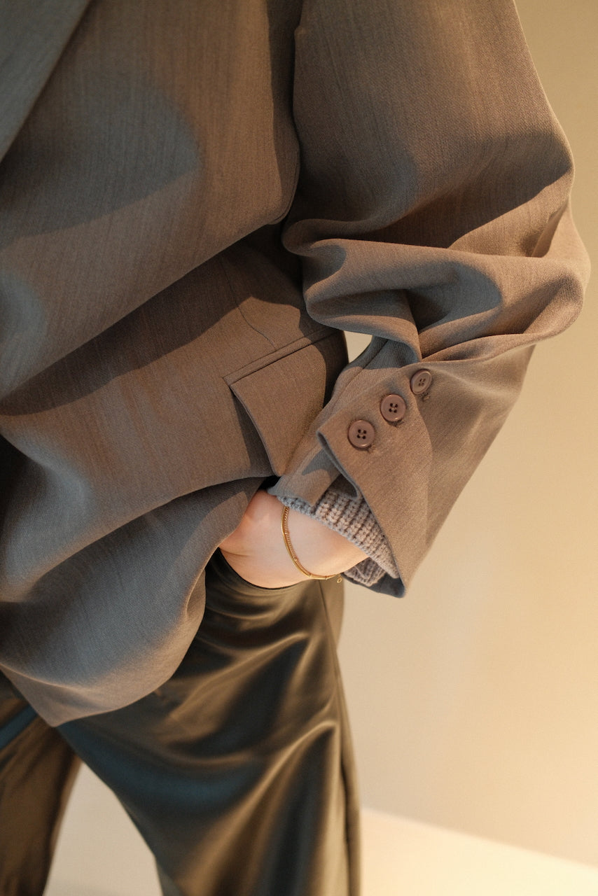 De Blazer Eliza in grijs is een stijlvolle oversized blazer in onze size en draagbaar van maat S tot en met L. Het model heeft een double breasted sluiting en een uniek detail op de mouw, wat zorgt voor een moderne en verfijnde uitstraling. Deze blazer vormt de perfecte basis voor elke garderobe en is zowel los te dragen als in combinatie met de bijpassende pantalon voor een complete, krachtige look. Tijdloos, veelzijdig en geschikt voor elke dag.