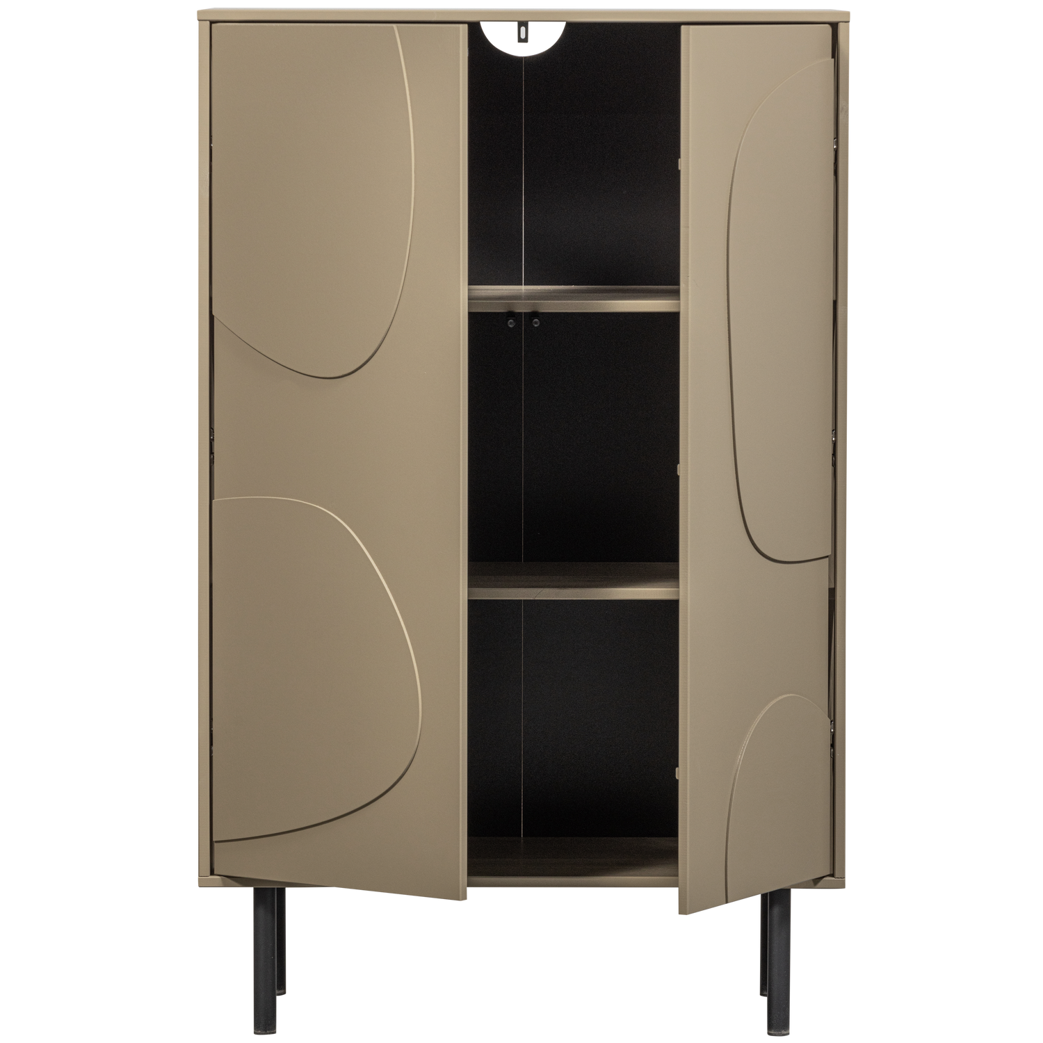 Speels, multifunctioneel en stijlvol – de Cadiz opbergkast uit de collectie van WOOOD is een opvallend meubelstuk dat functionaliteit en design moeiteloos combineert. Het strakke ontwerp in combinatie met het organische houtpatroon zorgt voor een eigentijdse uitstraling, terwijl de bruine afwerking en stevige zwarte poten een stijlvol kleurcontrast vormen. Dankzij de royale opbergruimte en het speelse karakter is deze kast geschikt voor zowel de woonkamer als de kinderkamer.