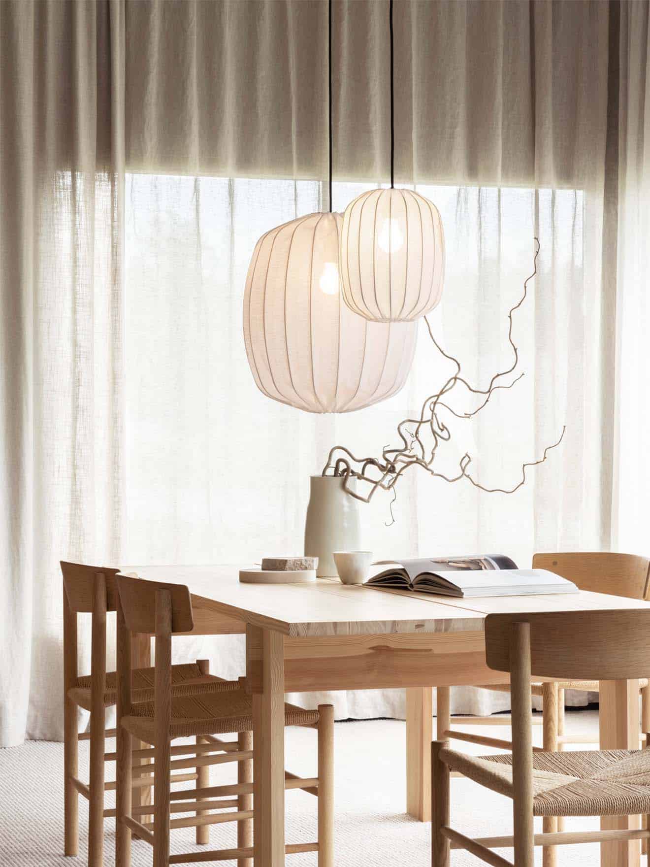 De Prisma Linen White is een kalm detail in een licht Scandinavisch interieur, maar kan ook een spannend contrast vormen tegen een donkere achtergrond. Met een hoogte van 52 cm en een diameter van 45 cm is deze lamp een veelzijdige en stijlvolle keuze voor elke ruimte.