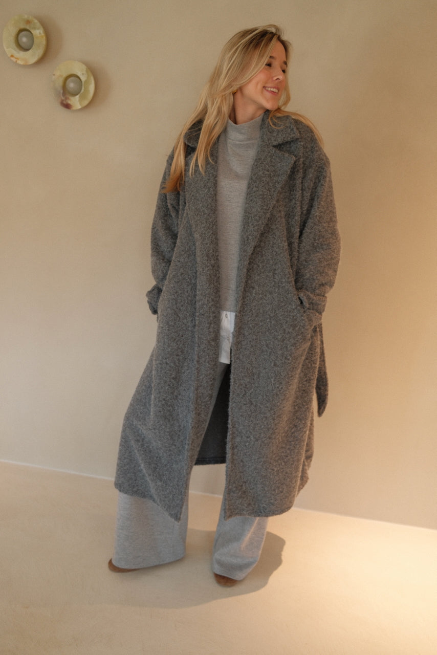 De Wollen Mantel Noa is dun, maar heerlijk warm en comfortabel. De mantel heeft een oversized fit, maar wordt mooi in balans gebracht door de band in de taille, waardoor hij slank oogt. Deze jas is perfect om alle dagen te dragen: van de schoolrun tot boodschappen doen. Een dunne, goede basis jas die praktisch is en er tegelijk stijlvol uitziet. One size.