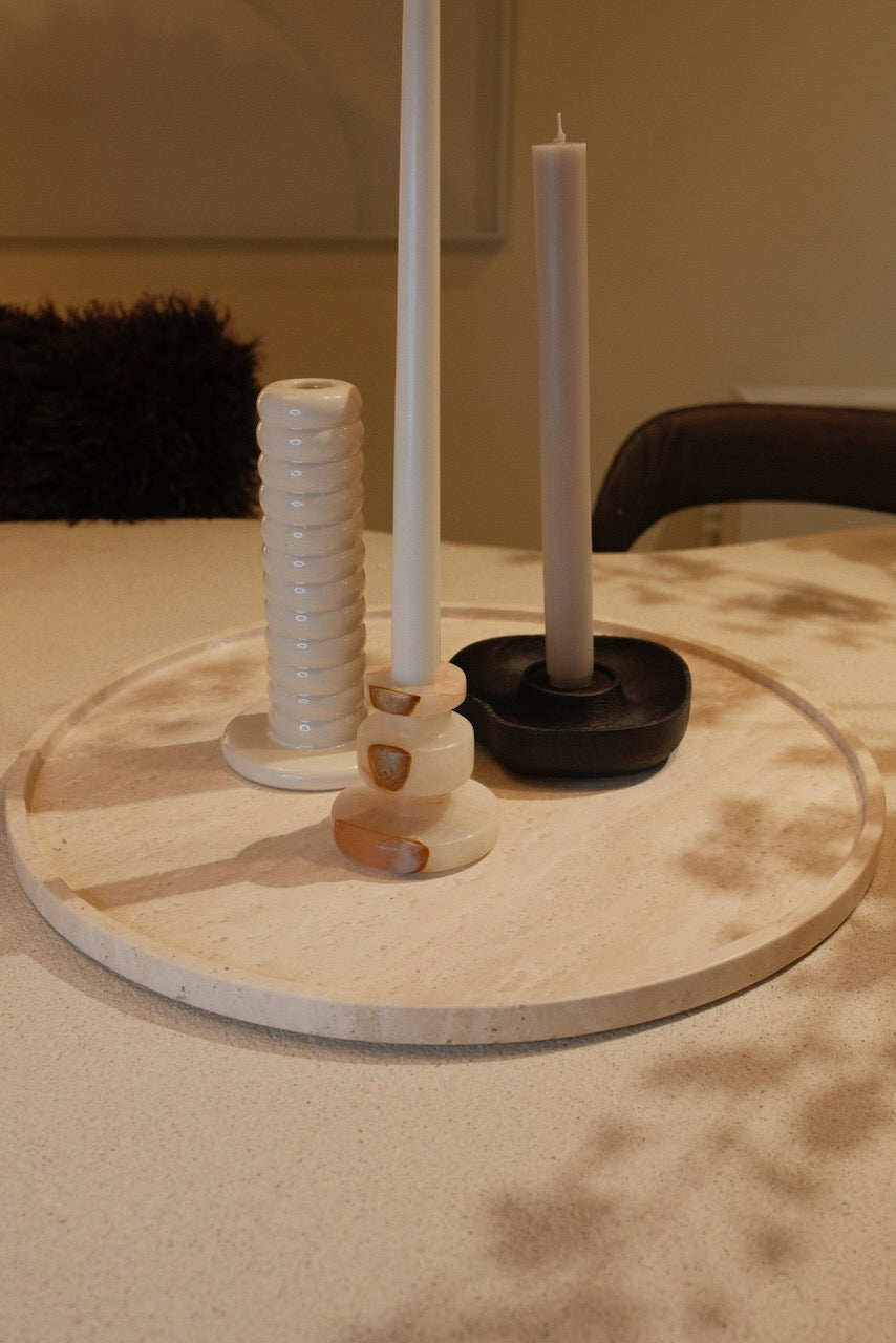 Met een diameter van 14 cm is deze kandelaar ideaal voor het creëren van subtiele, gezellige verlichting op een eettafel, salontafel of dressoir. Ook zonder kaars vormt de Lagoa een decoratief object dat sfeer en karakter toevoegt aan de ruimte.