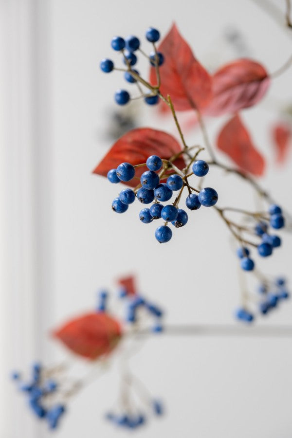 De Bessentak van Silk-Ka is een echte blikvanger met zijn bijzondere blauwe bessen en natuurlijke vertakking. Deze kunsttak voegt direct kleur en karakter toe aan elk interieur, terwijl de subtiele tinten zorgen voor een elegante, rustige uitstraling.