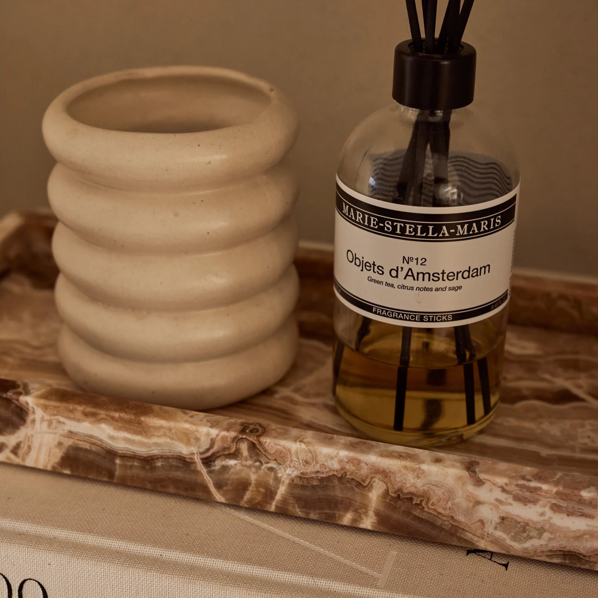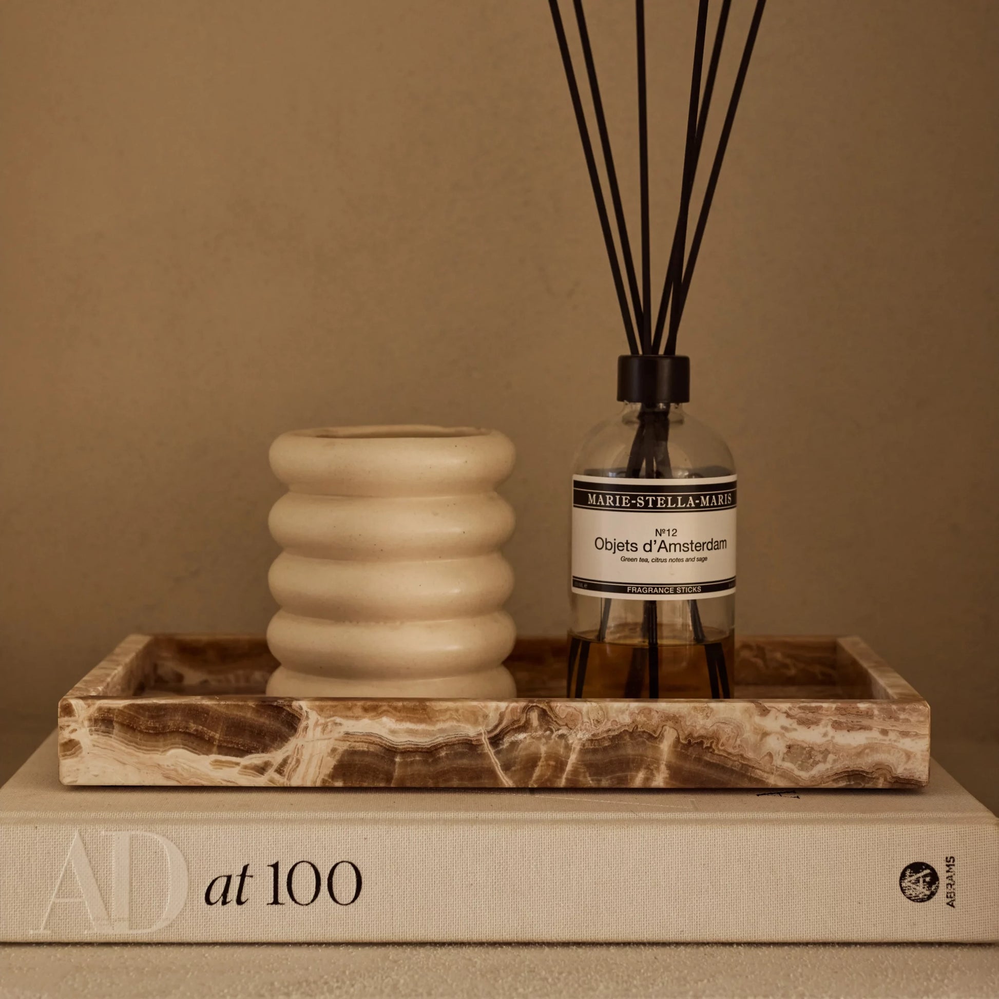 Elk dienblad is zorgvuldig vervaardigd met oog voor detail, waardoor het een luxueuze uitstraling heeft. Het gladde marmeren oppervlak maakt het ideaal voor sieraden, parfums of andere decoratieve voorwerpen.