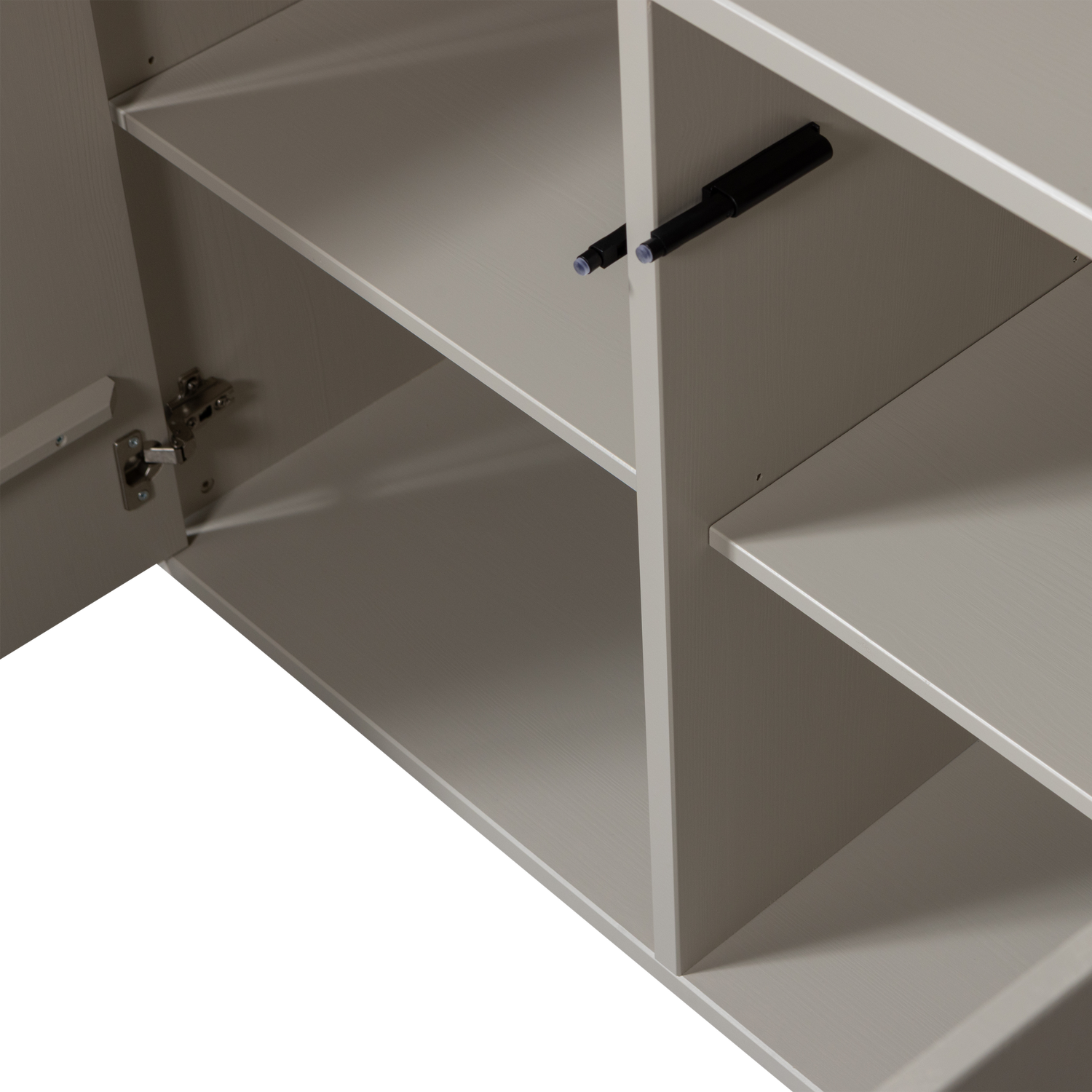 De kast is gemaakt van geschuurd grenenhout met een gladde, nette afwerking. Het FSC-gecertificeerde hout is behandeld met een milieuvriendelijke, watergedragen lak, wat de levensduur verlengt en eenvoudig onderhoud mogelijk maakt.