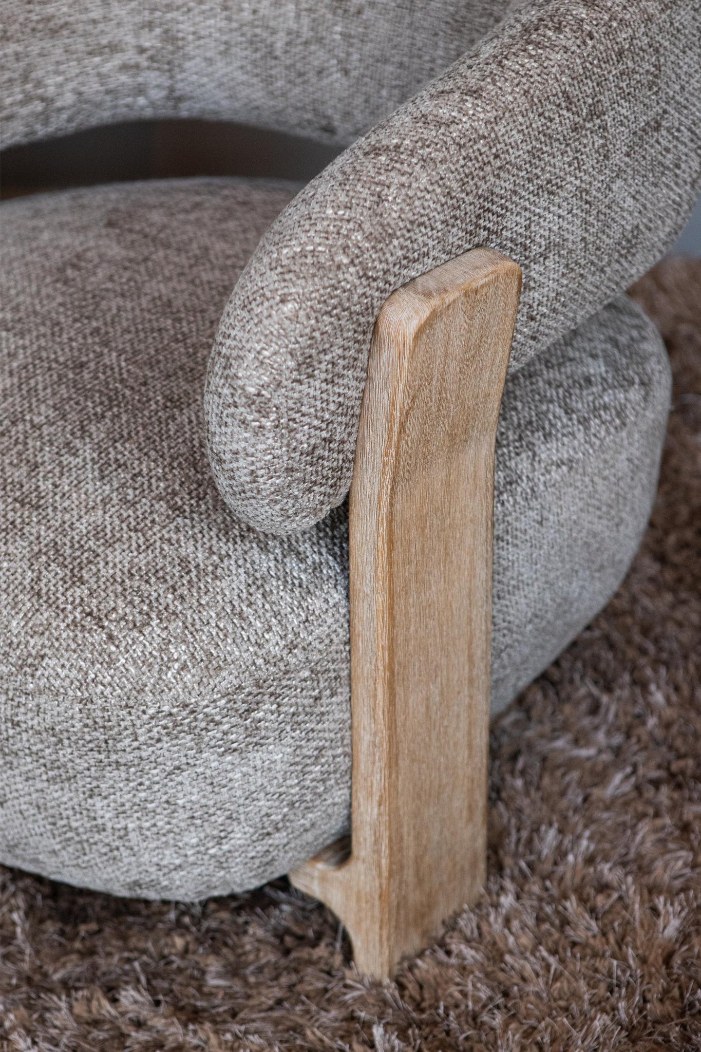 Deze Mire Taupe Fauteuil Legacy 3 Mink is een stijlvolle fauteuil met een taupe‑kleurige bekleding en een rubberwood frame die comfort en elegantie combineert en perfect is om je zithoek een warme, luxueuze en moderne uitstraling te geven.