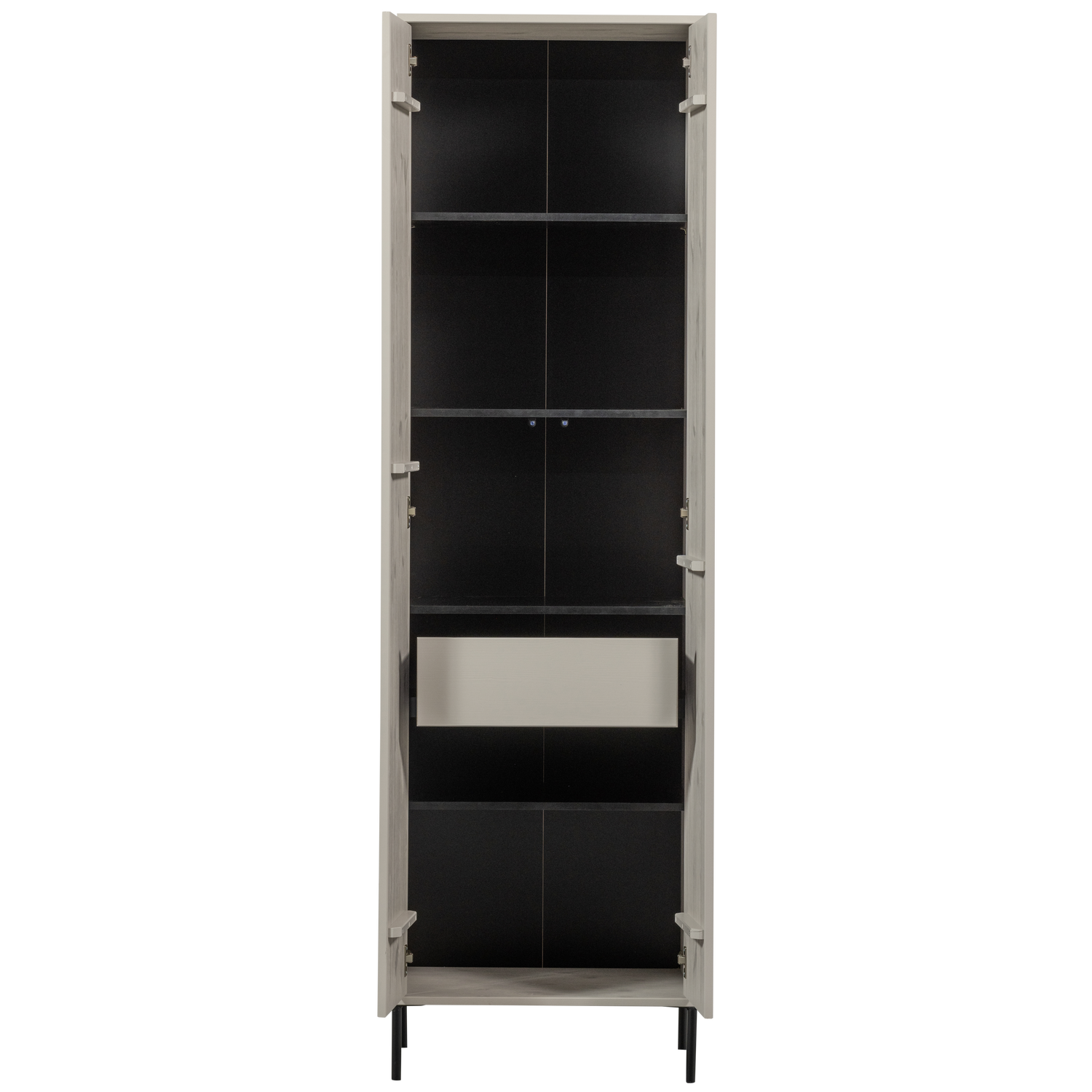 Speels, functioneel en stijlvol – de Gravure New hoge kast uit de collectie van WOOOD is een echte aanwinst voor opruimliefhebbers. Dankzij de twee deuren met geluidloos push-to-open systeem en de handige lade kun je dit smalle meubel overzichtelijk en naar wens indelen. Het zwarte metalen onderstel geeft een stoere uitstraling en maakt de kast geschikt voor diverse interieurstijlen. Let op: vanwege het kantelgevaar raden wij aan de kast aan de muur te bevestigen.