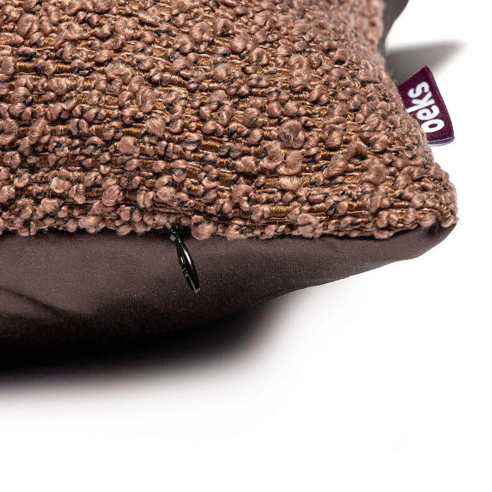 Bowie in donkerroze is een langwerpig sierkussen met een grove boucléstructuur die direct opvalt. De diepe kleur geeft warmte, de stof voegt textuur toe. Een krachtige combinatie van comfort en stijl.