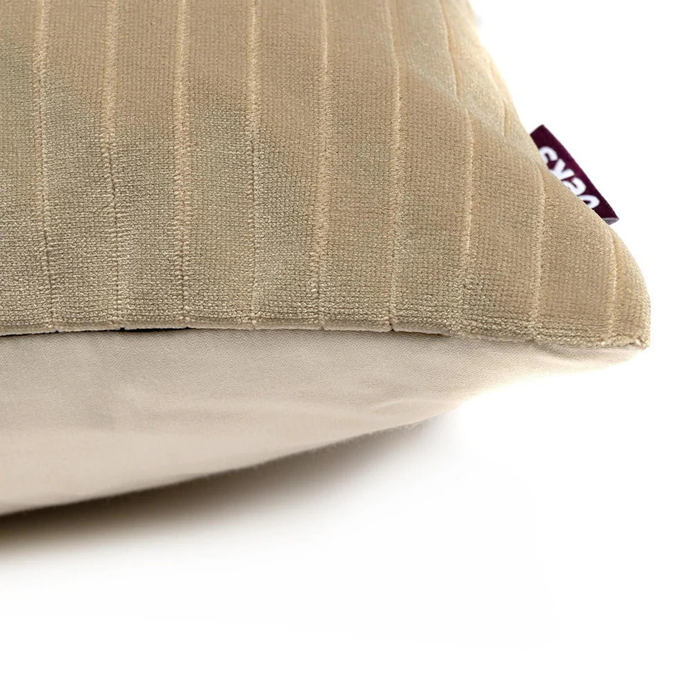 Finn is zacht, maar zeker niet saai. De lichte velvet stof met subtiele streep textuur geeft dit vierkante kussen van 45x45 cm een rustige, warme uitstraling met een luxe randje. Perfect voor wie houdt van ingetogen elegantie.