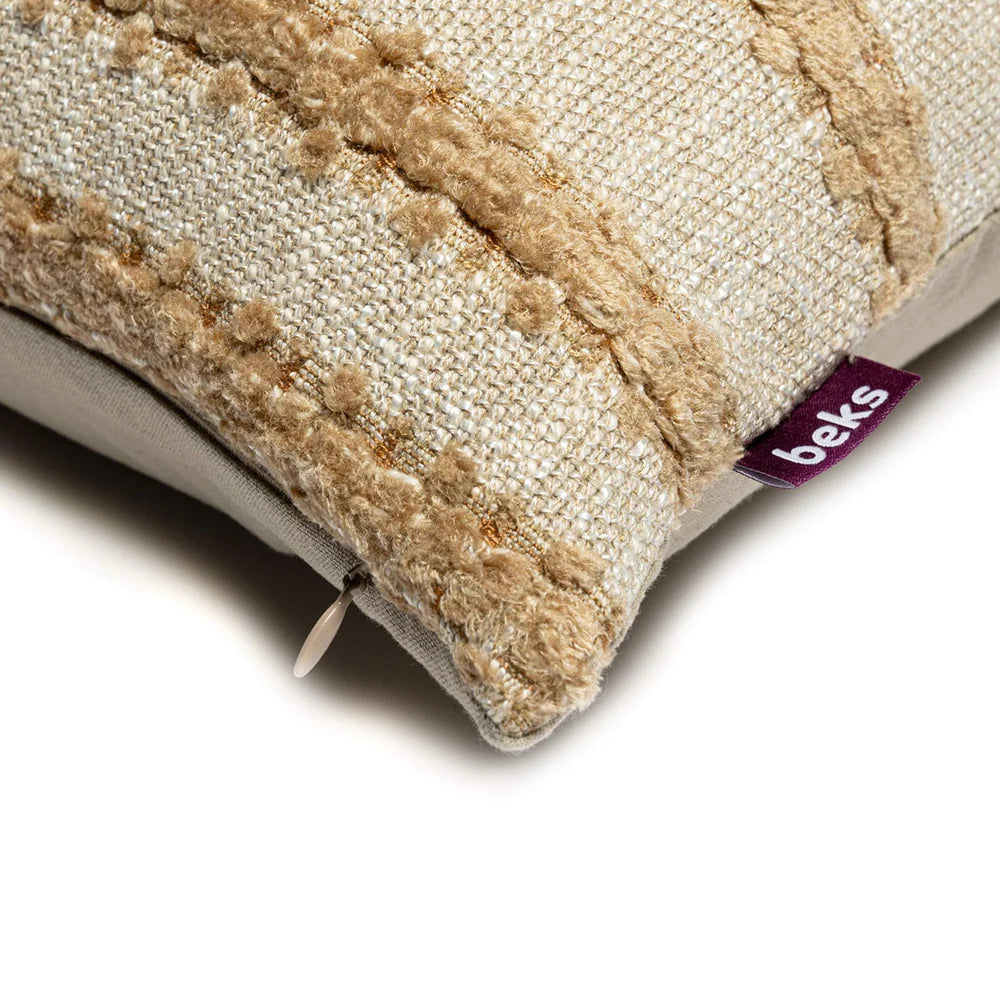 Knud is een vierkant kussen in een zachte zandkleur met een fijne streepstructuur die nét dat beetje extra geeft. Rustig, stijlvol en verrassend veelzijdig. Combineert prachtig met andere natuurlijke tinten.