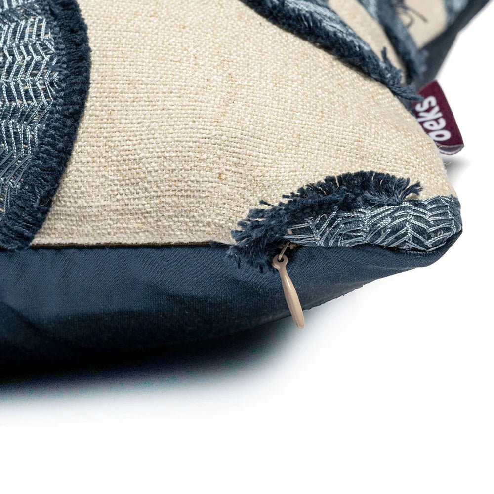 Compact van formaat, groots in karakter. Lio is een sierkussen met een zachte beige basis en een speels blauw dessin. De kronkelende lijnen geven het kussen een verfijnde, eigen uitstraling. Klein, maar met een verrassend luxe effect, ideaal als stijlvol accent in je interieur.