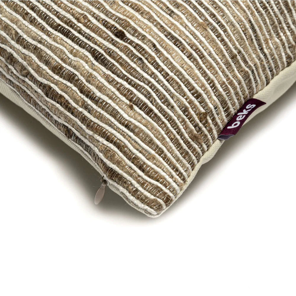 Rust, warmte en karakter in één kussen. Tjeu is een langwerpig sierkussen met een verfijnde touwstructuur in een mix van taupe, beige en bruin. De horizontale lijnen zorgen voor een natuurlijk ritme en maken dit kussen tot een verbindende factor in je interieur.