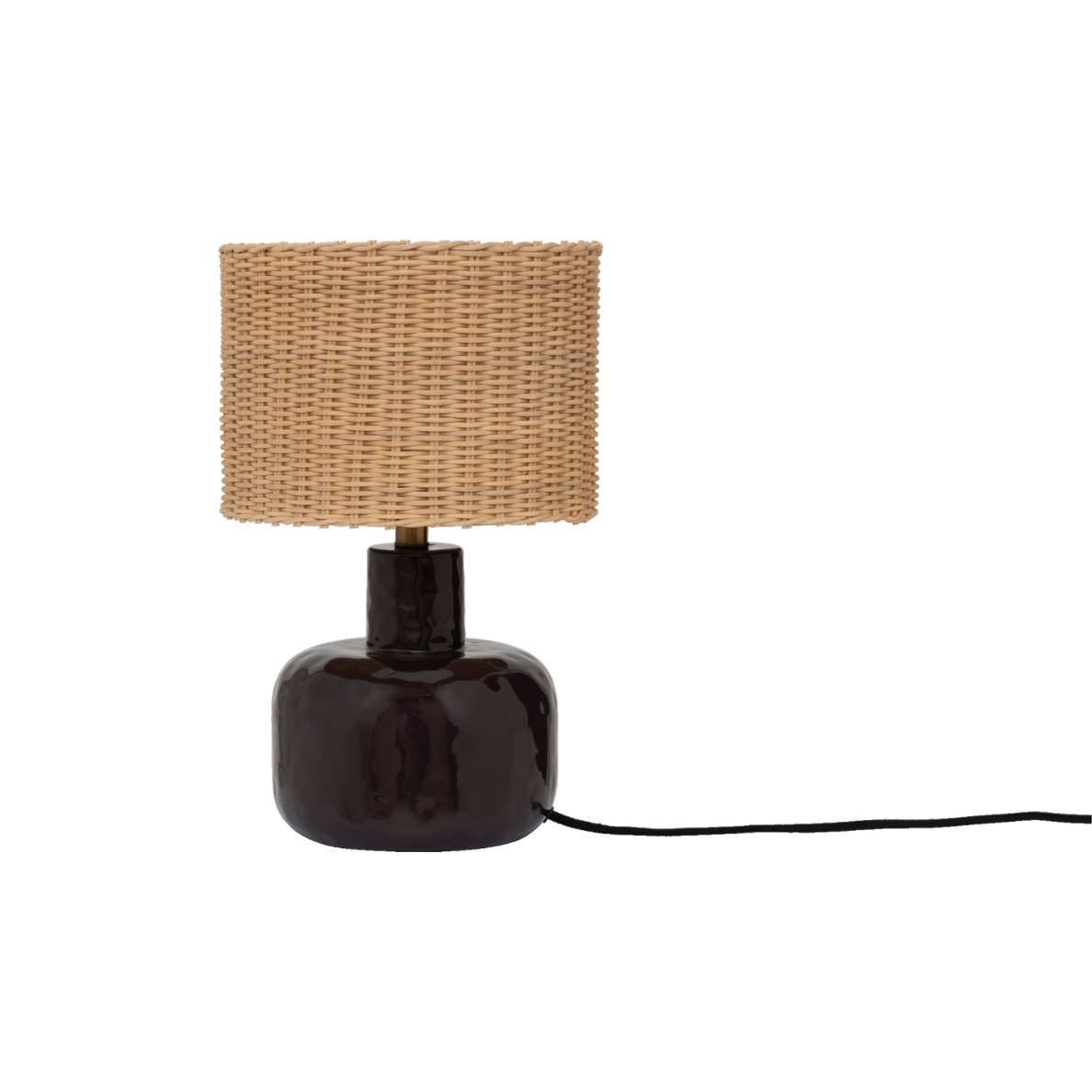 De perfecte mix van vakmanschap en contrast: deze lamp combineert een handgevlochten rieten kap met een glanzende auberginekleurige voet van gerecycled keramiek. Een sfeervol, modern ontwerp dat karaktervol licht verspreidt.