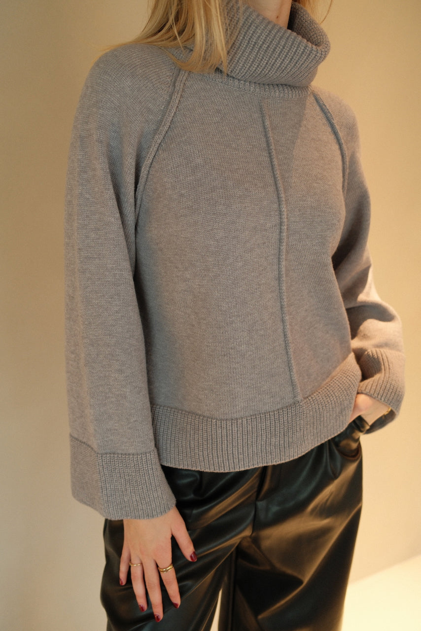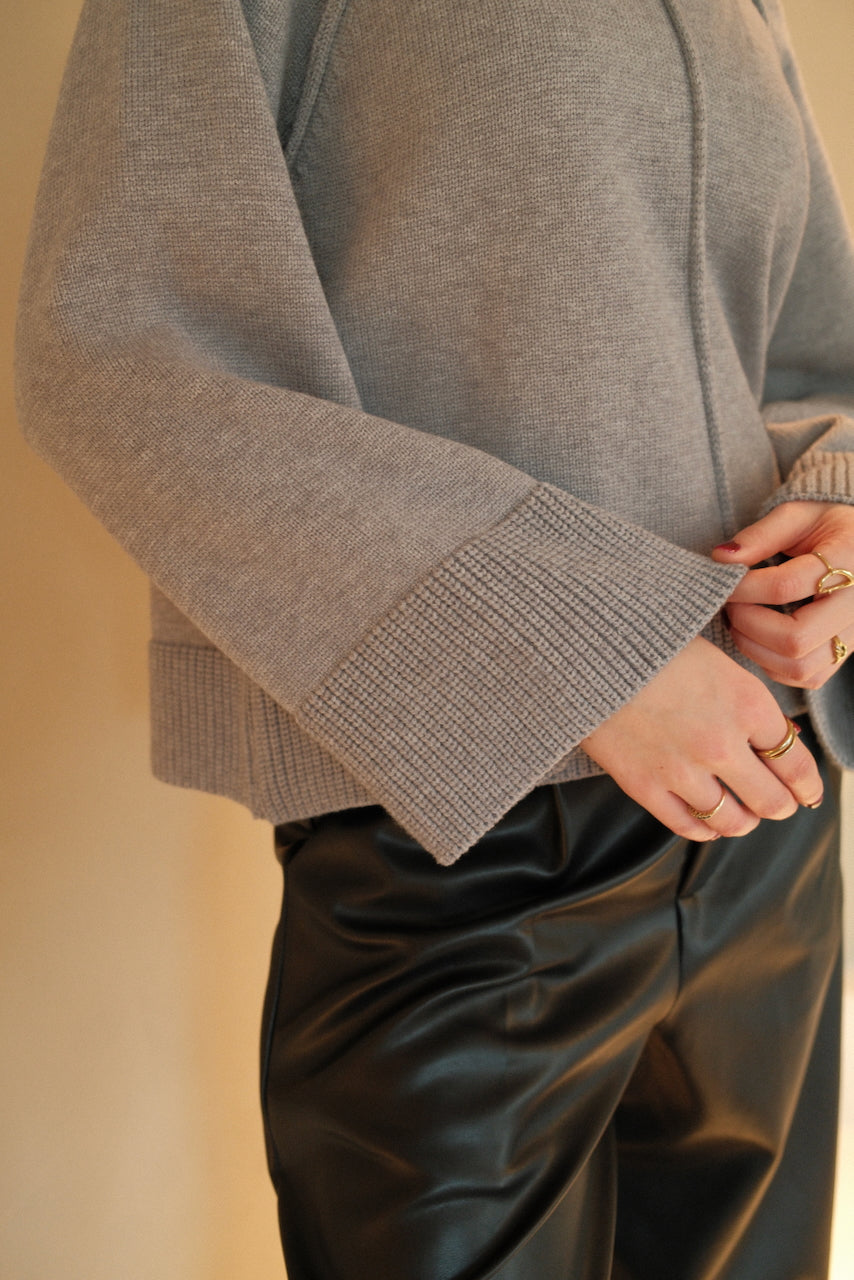 De Trui Gemma is heerlijk draagbaar en heeft een mooie col en wijd uitlopende mouwen, wat zorgt voor een stijlvolle en vrouwelijke uitstraling. Een item dat direct opvalt door zijn vorm en comfort. De trui draagt heel fijn en kriebelt niet. Dit is onze size en hij is draagbaar van maat XS tot en met M. Prachtig te combineren met onze leren broekjes of pantalons voor een tijdloze, moderne look.