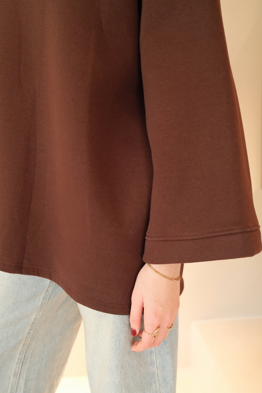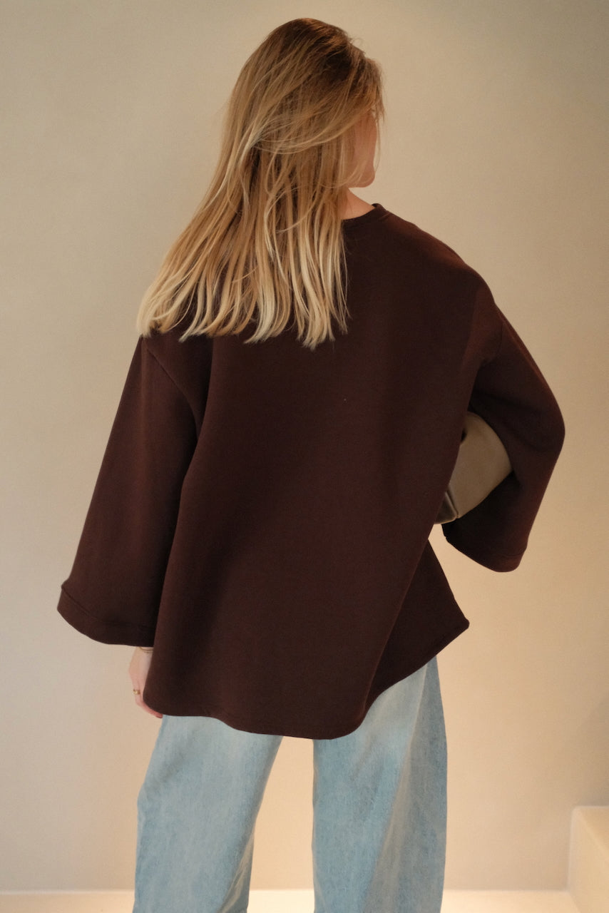 De Trui Hailey in bruin is een absolute favoriet binnen de FORMA By LDE collectie. Dit model heeft een comfortabele oversized fit en is uitgevoerd in one size, waardoor hij moeiteloos past bij verschillende lichaamstypes. Een trui waar we zelf enorm van houden vanwege de veelzijdigheid en het fijne draagcomfort. Hailey is het perfecte item voor alle dag: zacht, relaxed en makkelijk te combineren. De trui staat prachtig op elke broek, van denim tot een minimalistische pantalon. Wil je de look wat chiquer maken? Combineer Hailey dan met een witte blouse eronder voor een verfijnde uitstraling, of draag hem met de leuke stippentop voor een speelse, gelaagde look.