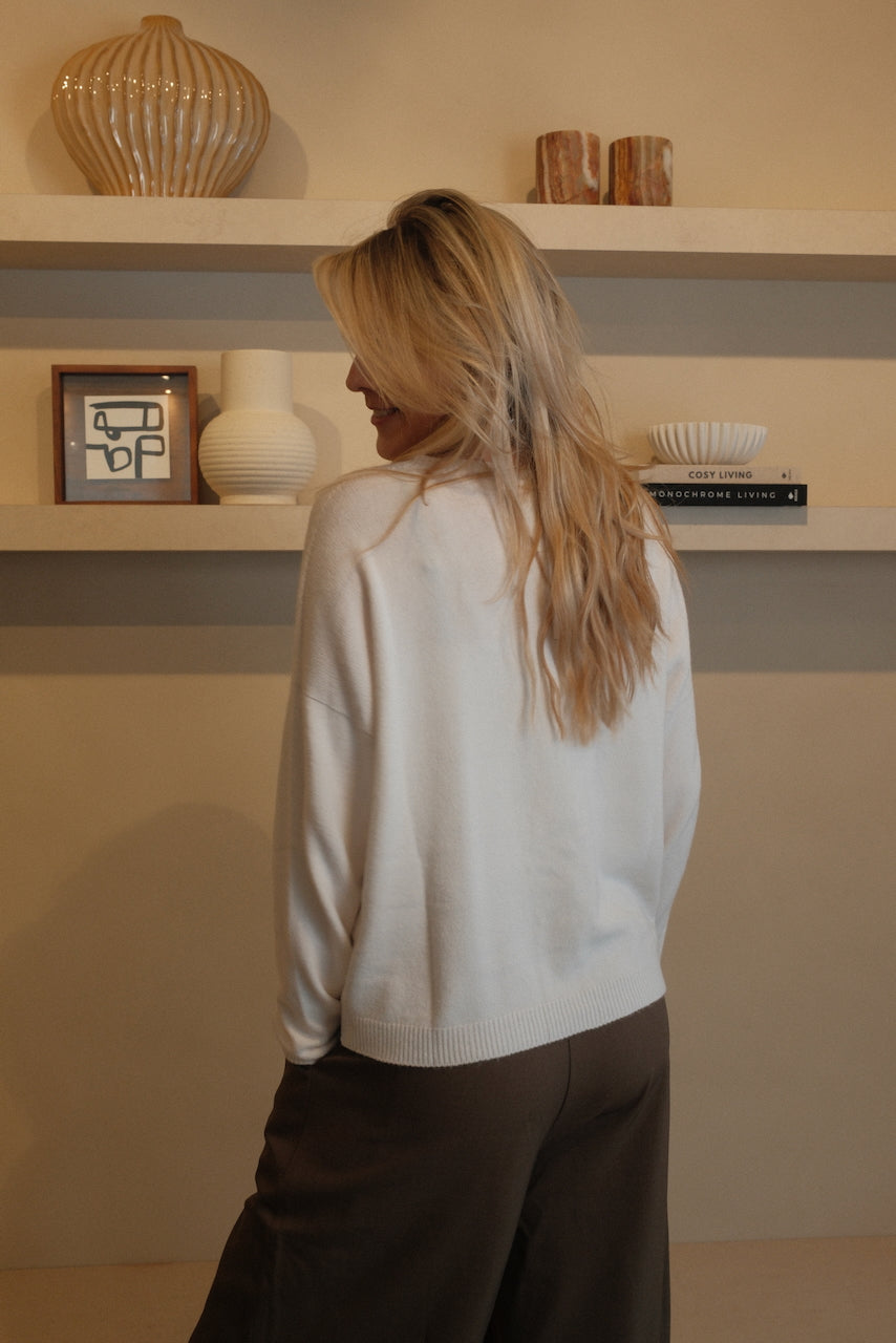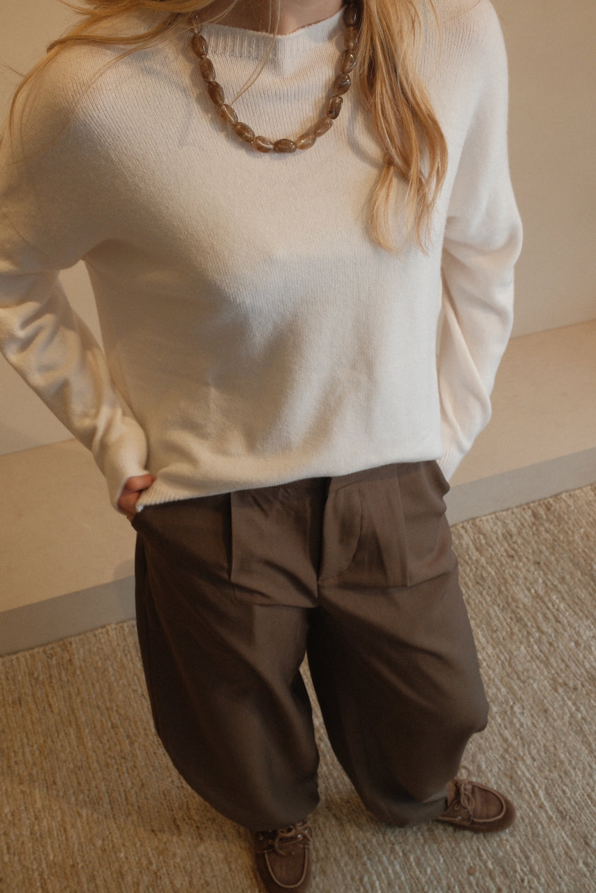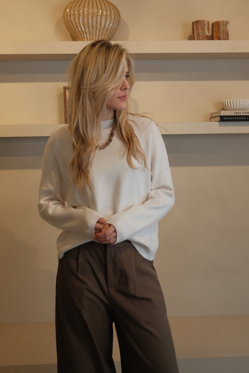 De Saar trui is een perfecte basis voor elke garderobe. Een tijdloos model dat heerlijk draagt en niet kriebelt. Zacht op de huid, comfortabel in elke setting van dagelijks tot gestyled. one size.