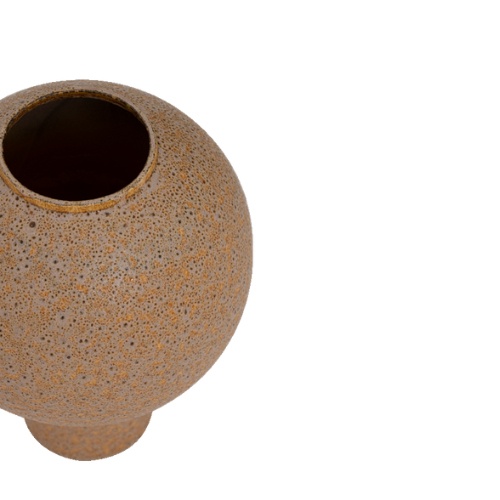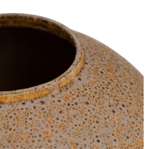 Nieuwe collectie Urban Nature Culture 2026. Een grote keramische vaas in een zeesterkleur met een uitgesproken reactieve glazuurlaag, vervaardigd in Portugal. De rechte basis met daarop een bolle bovenzijde geeft de vaas een krachtige, sculpturale uitstraling. Perfect om een vleugje natuurlijke warmte en expressie toe te voegen aan een sidetable, schouw of zorgvuldig samengestelde wandplank.