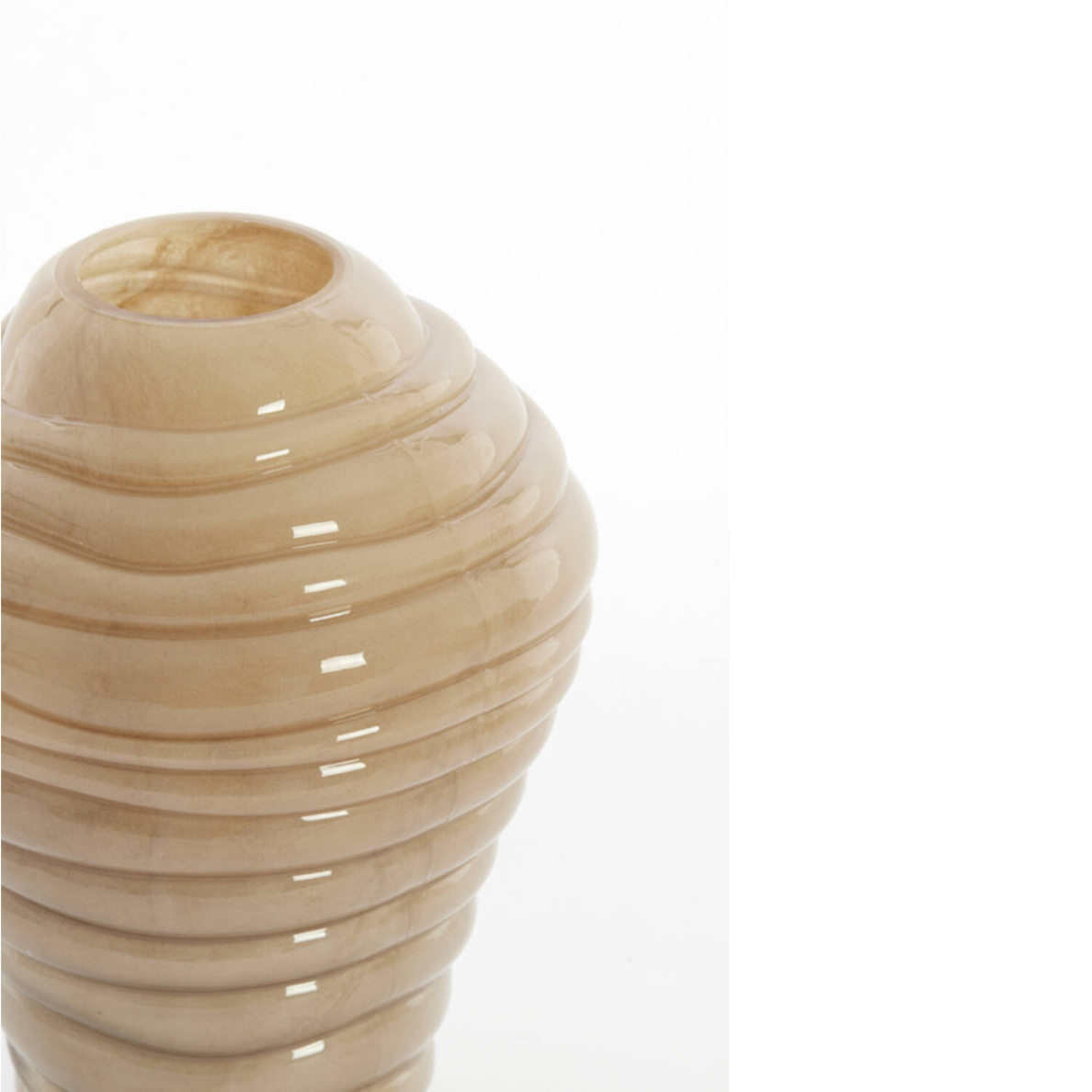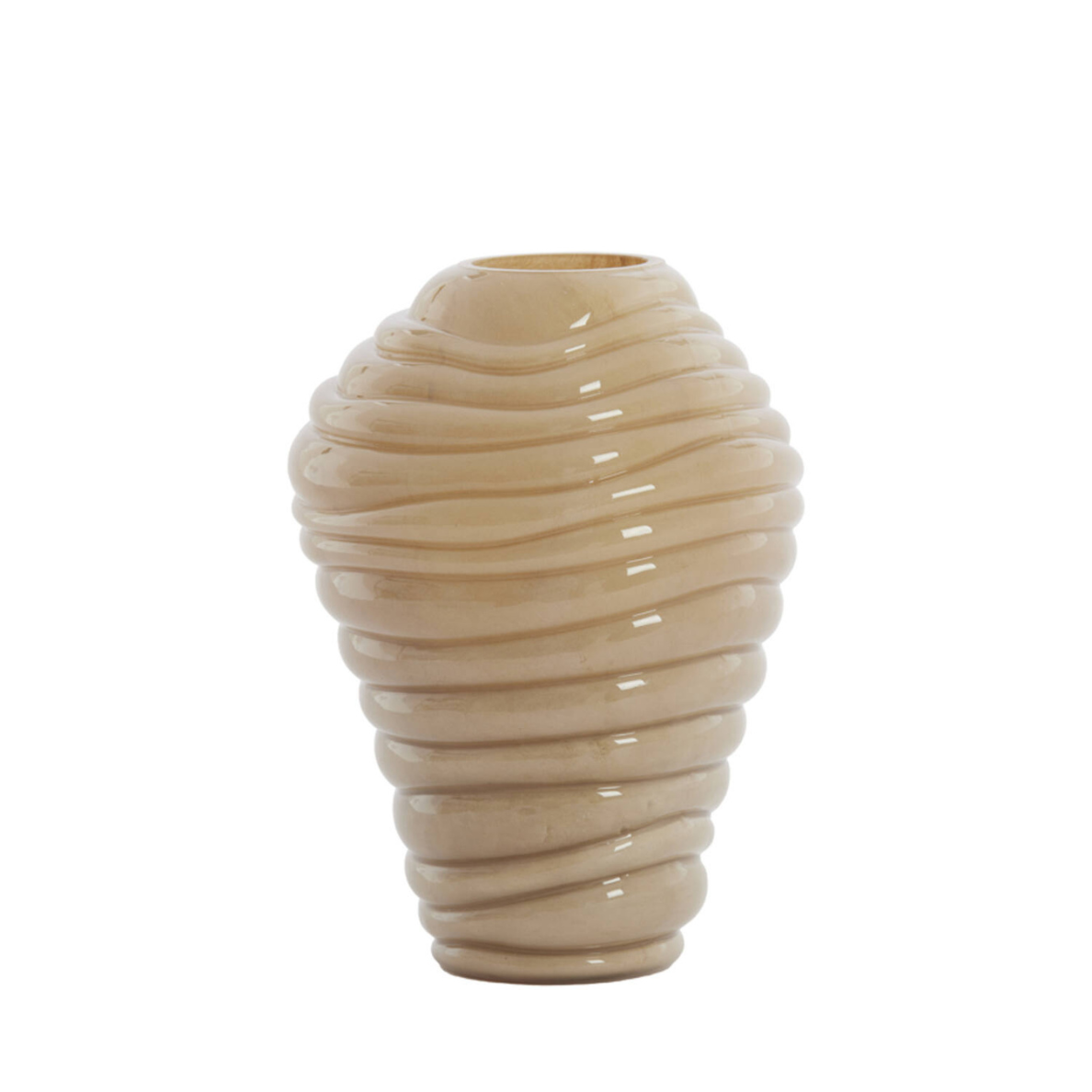Met een diameter van 18 cm en een hoogte van 25 cm heeft deze vaas een gebalanceerd en tijdloos formaat dat prachtig staat op een dressoir, sidetable of vensterbank. De subtiele zandkleur geeft de vaas een natuurlijke, zachte uitstraling die moeiteloos combineert met uiteenlopende woonstijlen — van modern en minimalistisch tot warm en eclectisch.