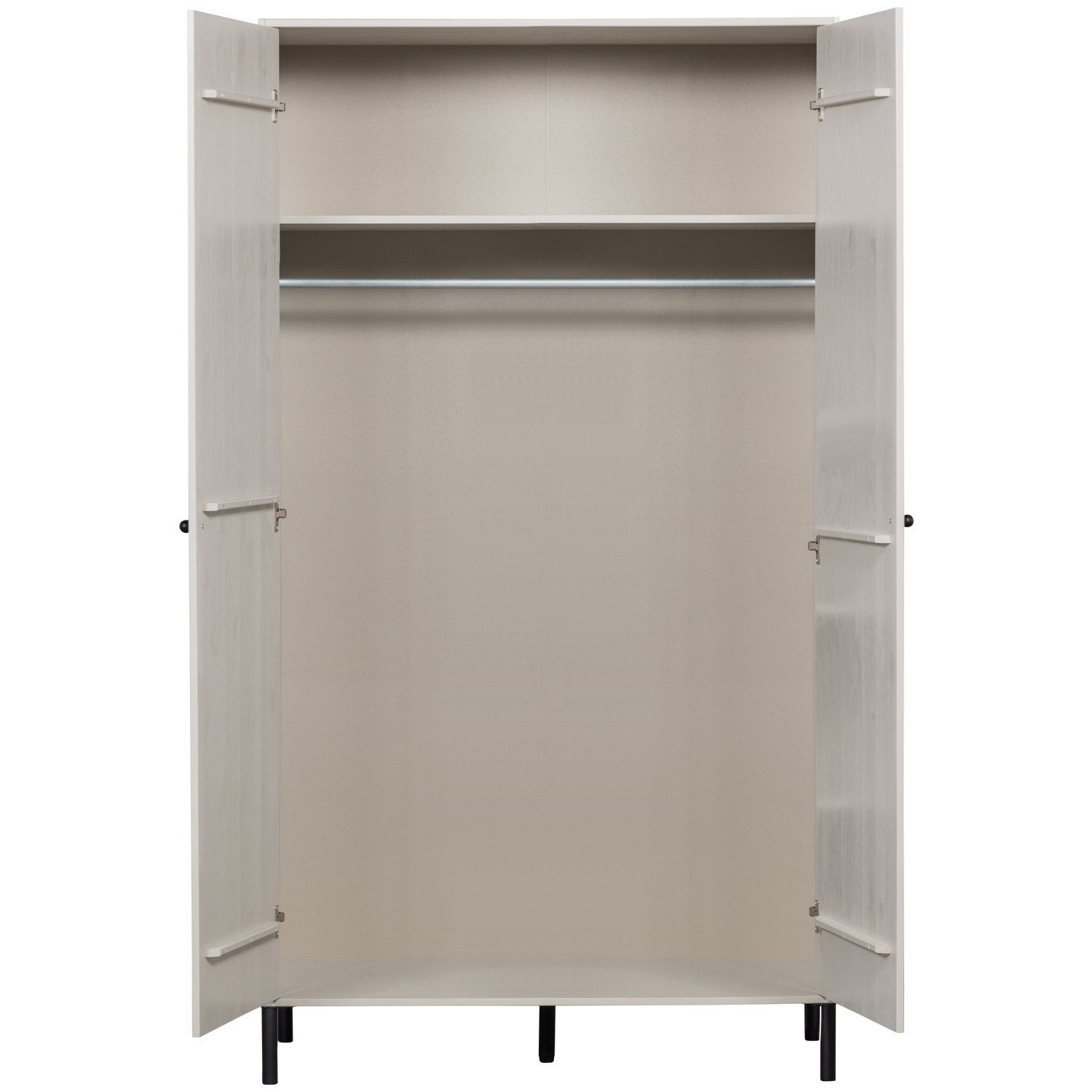 Speels, functioneel en stijlvol – de kledingkast Xina uit de collectie van WOOOD biedt veel opbergruimte en een overzichtelijke indeling voor ieder interieur. Dankzij het royale hanggedeelte en de standaard legplank kan kleding netjes worden opgeborgen. Voor extra opbergruimte is er een optioneel interieurpakket beschikbaar met drie extra legplanken.